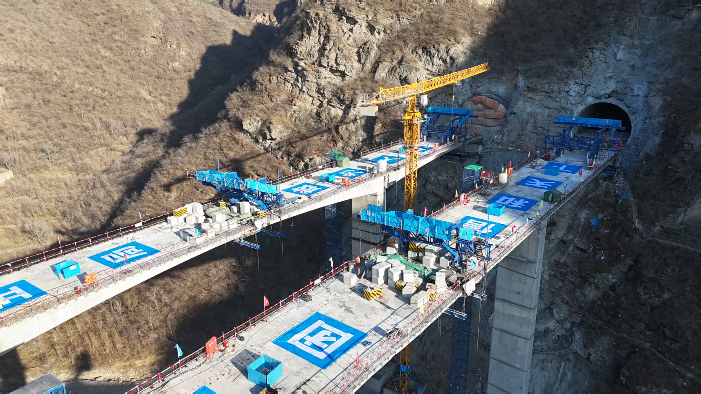 今天,108新线高速建设一口气迎来两大突破:河东村隧道双线贯通,成为全线首座双线贯通隧道;东庄子大桥主桥合龙,成为全线首座刚构合龙的桥梁。大桥与隧道相连,在京西群山中勾勒出一条穿山越谷的“云端高速”。
