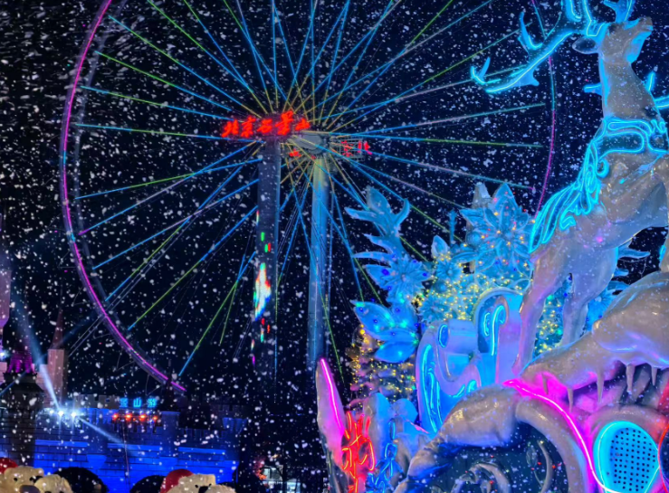 作为本次活动的核心亮点,跨年夜(12月31日)将上演多重狂欢好戏。非遗打铁花与现代激光技术惊艳碰撞,1600℃铁水绽放漫天华彩,搭配城堡焰火秀轮番上演,冰与火交织驱散冬夜寒意,定格跨年浪漫瞬间。星梦音乐舞台集结时尚乐队、专业主持人,动感舞蹈、DJ狂欢与民谣演绎轮番登场,陪大家在音乐浪潮中倒计时,迎接2026年的到来。此外,梦幻星光花车巡游搭配动态飘雪与灯光效果,NPC方阵全程互动;全园定时人工降雪营造浪漫雪国氛围,驯鹿互动、主题美陈打卡等沉浸式体验同步开放,让跨年夜趣味十足。游玩体验方面,网红小吃档口与暖冬限定套餐暖心上线,经典游乐设施全面开放,满足游客游玩需求。