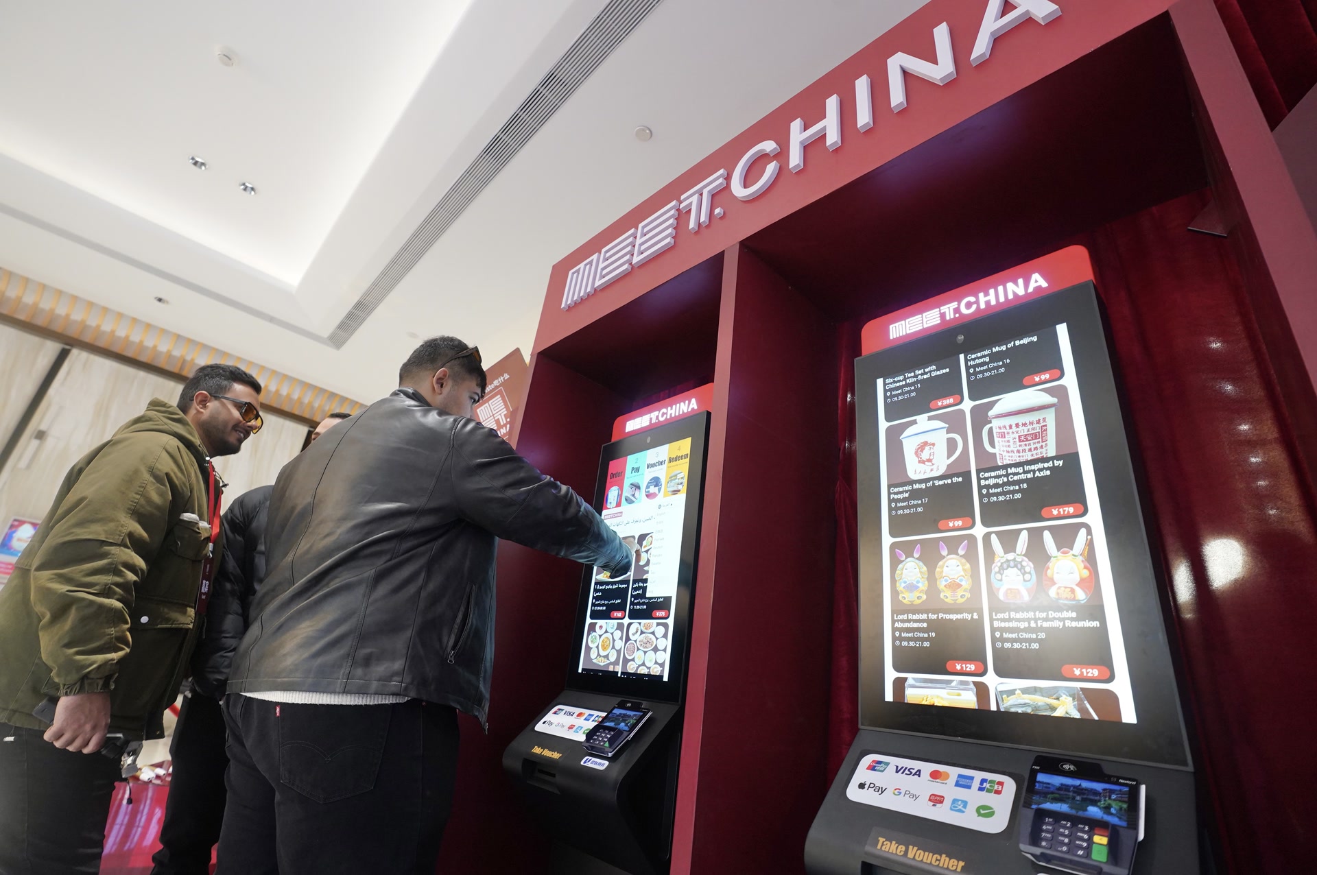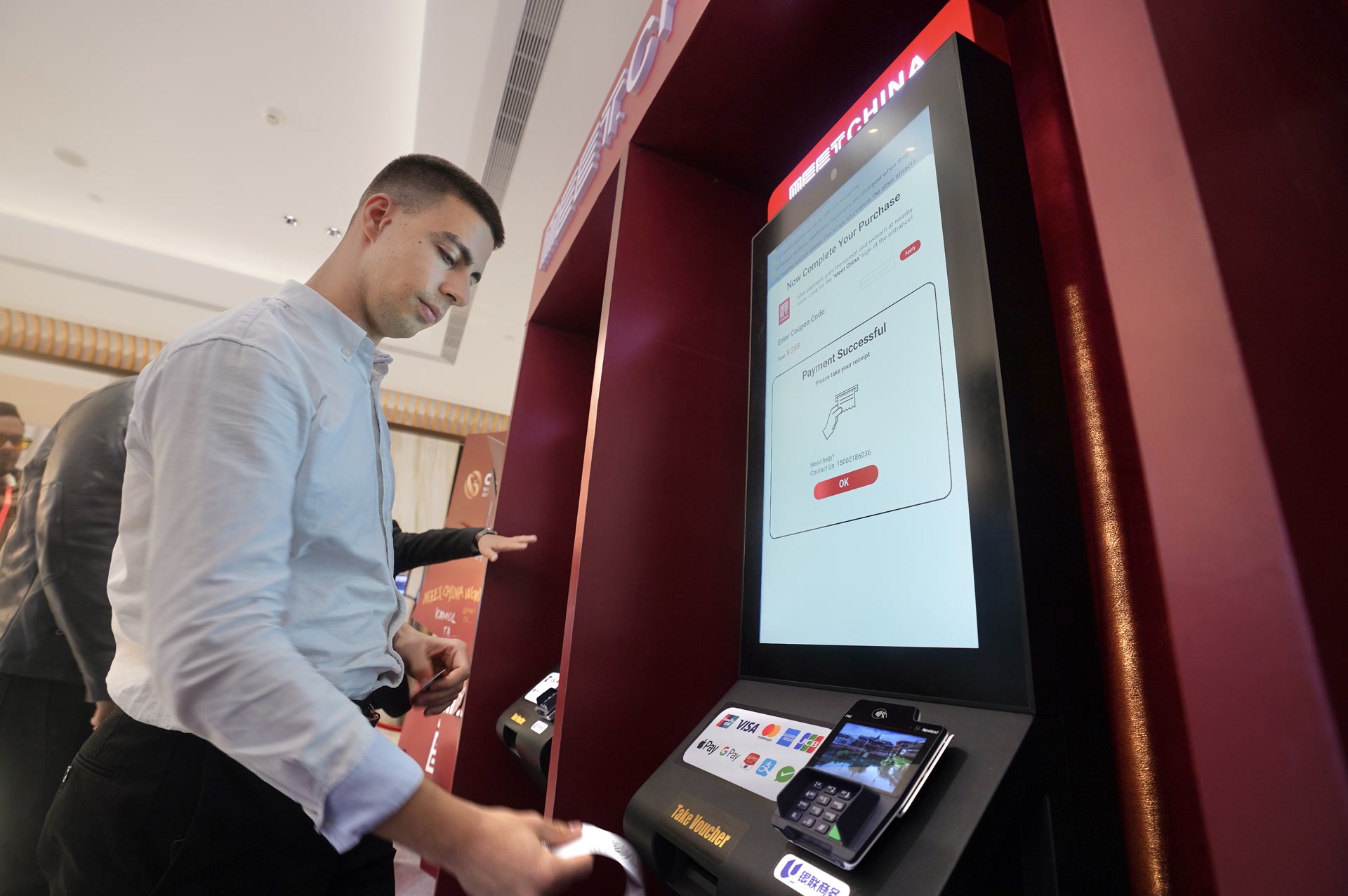 在“礼物”页面中,阿尔巴尼亚小伙子亨利看中了一只兔儿爷。点击“购买”后,直接刷他的本国银行卡,就完成了秒级支付。随着清脆的“叮”声,支付完成,机器吐出来了一张小票。“买东西太丝滑了!”他笑着向记者展示手中的小票,随后就去商店核销、领取商品了。