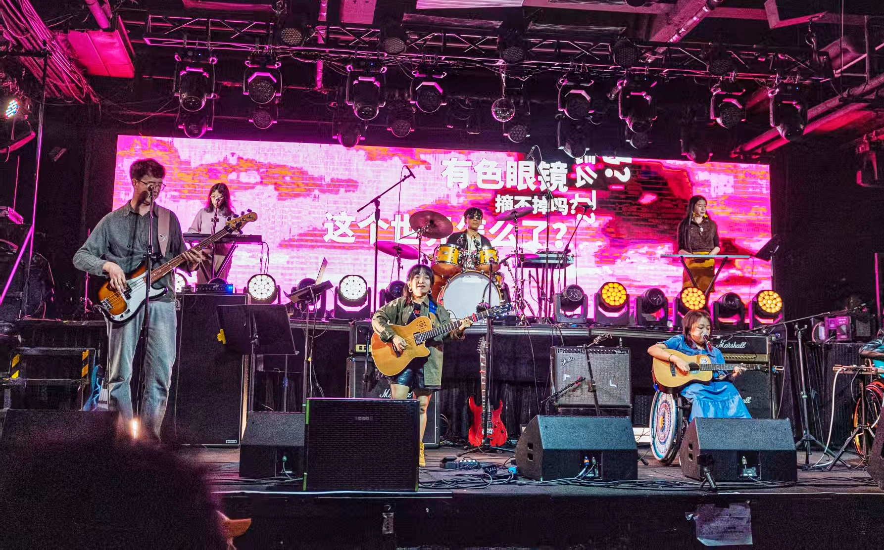演出现场,300余名观众齐聚,既有相伴多年的老友,也有新朋、病友及公益、媒体伙伴。乐队带来四首全新原创作品首唱,并演绎了《我们都有病》《从不罕见》两张专辑中的曲目,歌曲均由身患成骨不全症、马凡综合征等罕见病的成员创作。间奏时刻,乐队抛洒“药丸”纪念品,借歌词“我们都有病,没有爱不行”传递对生活的热爱与对观众的谢意。义务辅导乐队十年的马歌老师,携天空乐队、乐天派乐队及丁一格登台助唱,将现场氛围推向高潮。