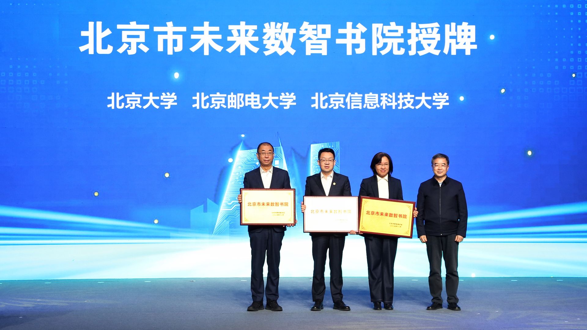 当天,北京市未来数智书院正式授牌启动。北京大学、北京邮电大学和北京信息科技大学成为首批建设单位,未来将携手探索数智时代拔尖创新人才培养。