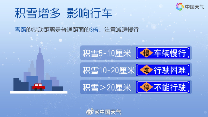 雪天行车到底有多危险?注意,雪后路面变滑,雪路的制动距离是普通路面的3倍。如果是时速50公里的汽车,在干燥路面制动距离15米,到了积雪路面,制动距离将增至50米,结冰路面制动距离更是达到100米左右,制动距离却相差6倍多!