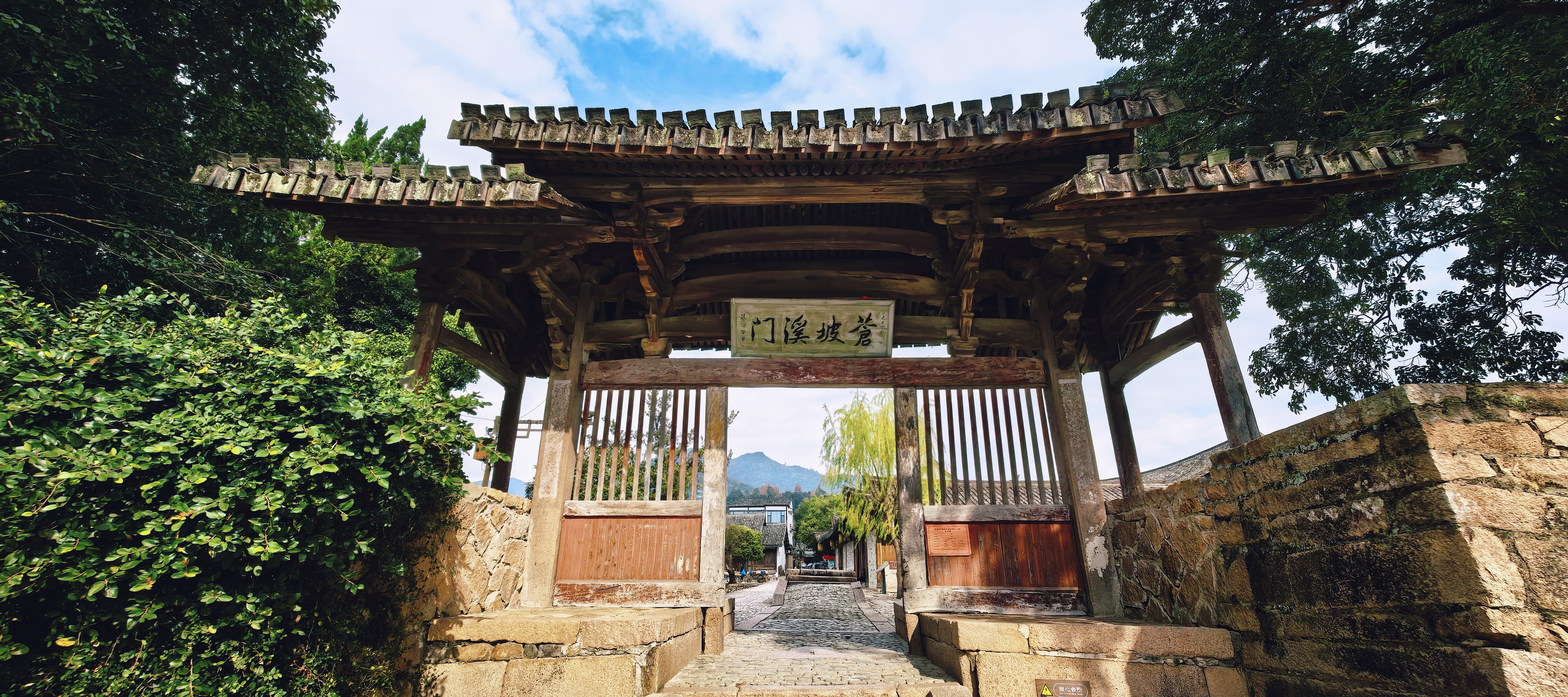 一脚踏进“苍坡溪门”,仿佛跨过的不是一道寻常门槛,而是不经意间便穿越了千年。木结构的门楼端庄古朴,六层斗拱未用一钉,檐角默默指向青空。风从门洞穿过,让人仿佛嗅到时光的味道。