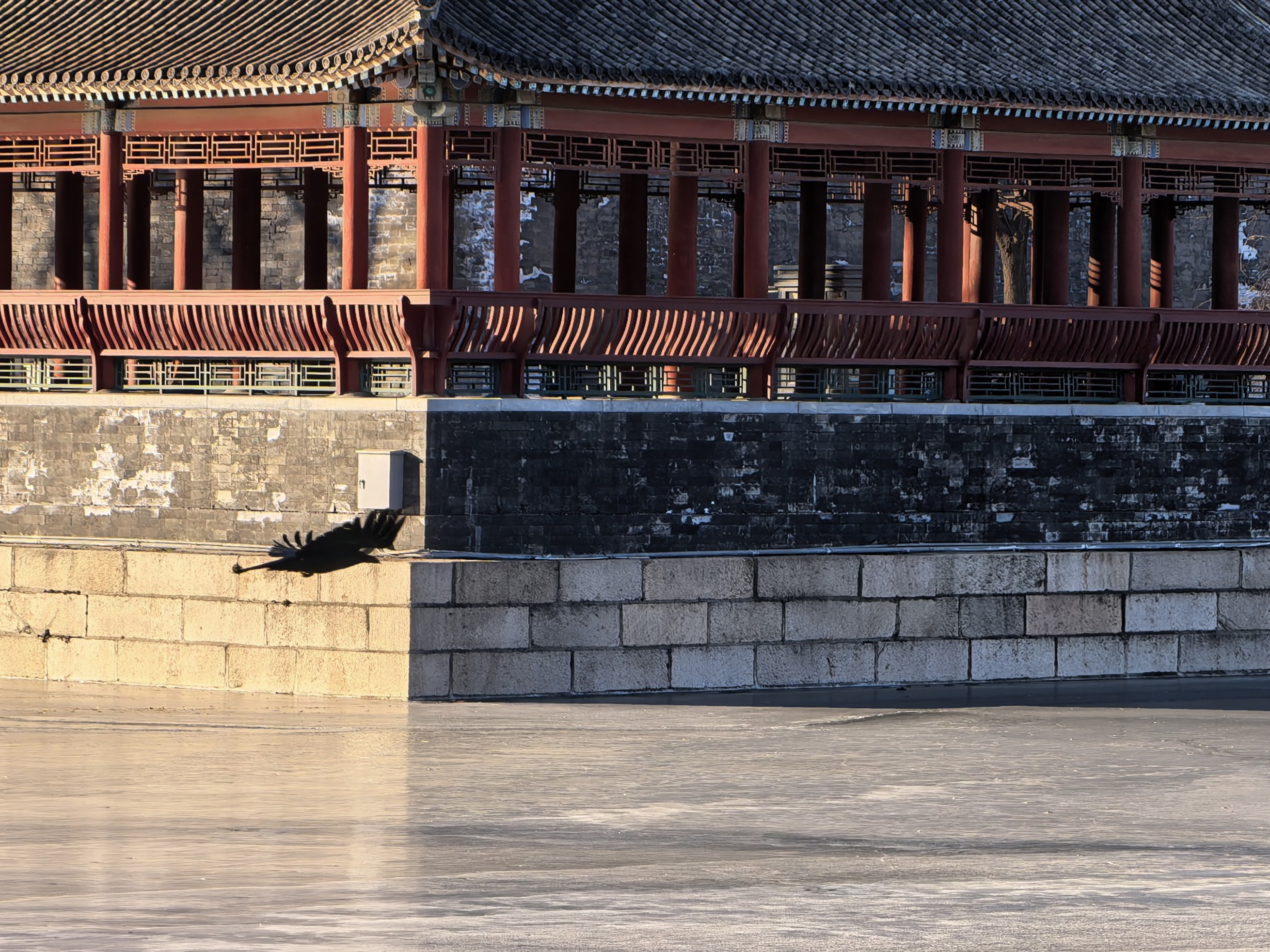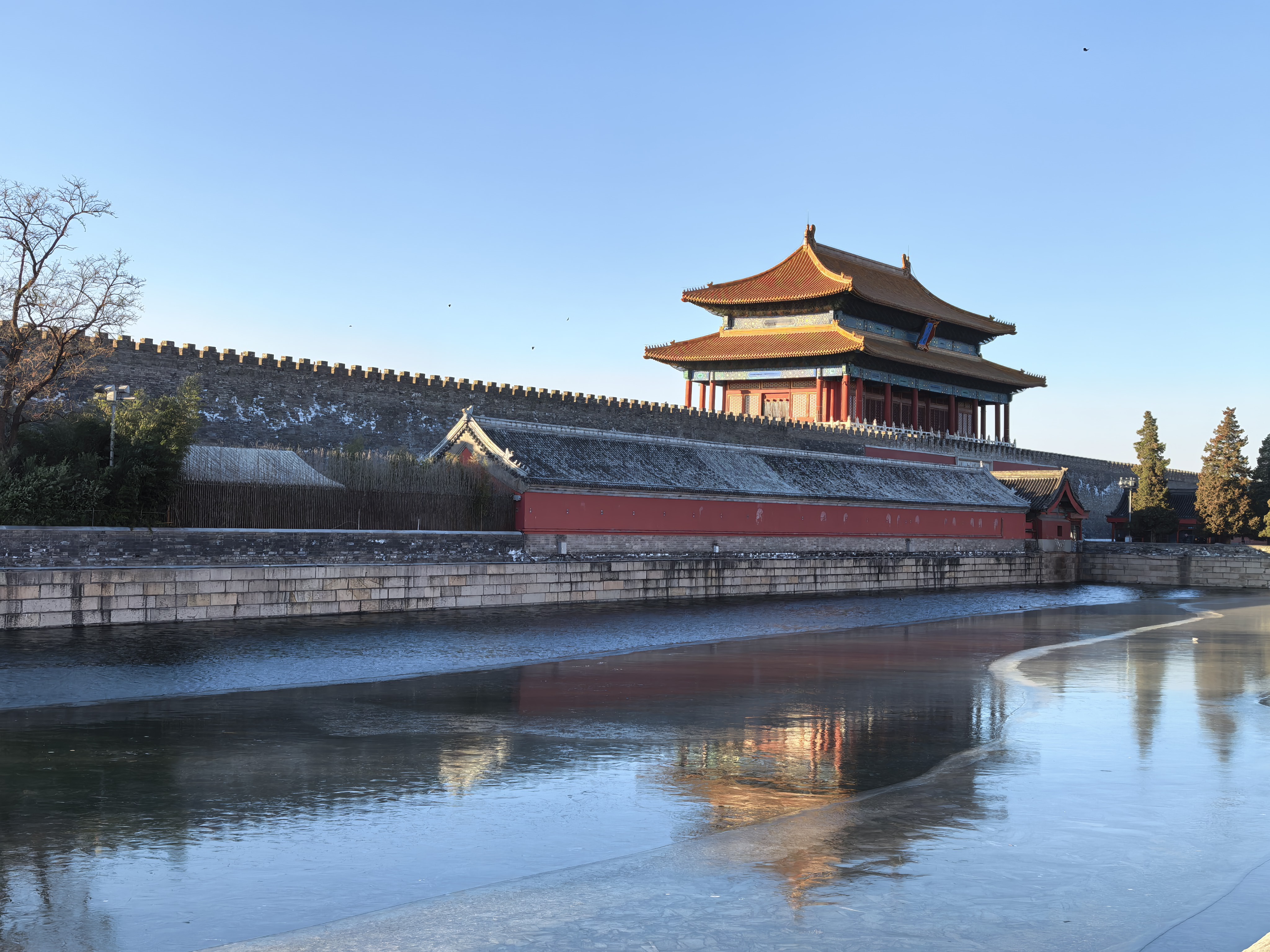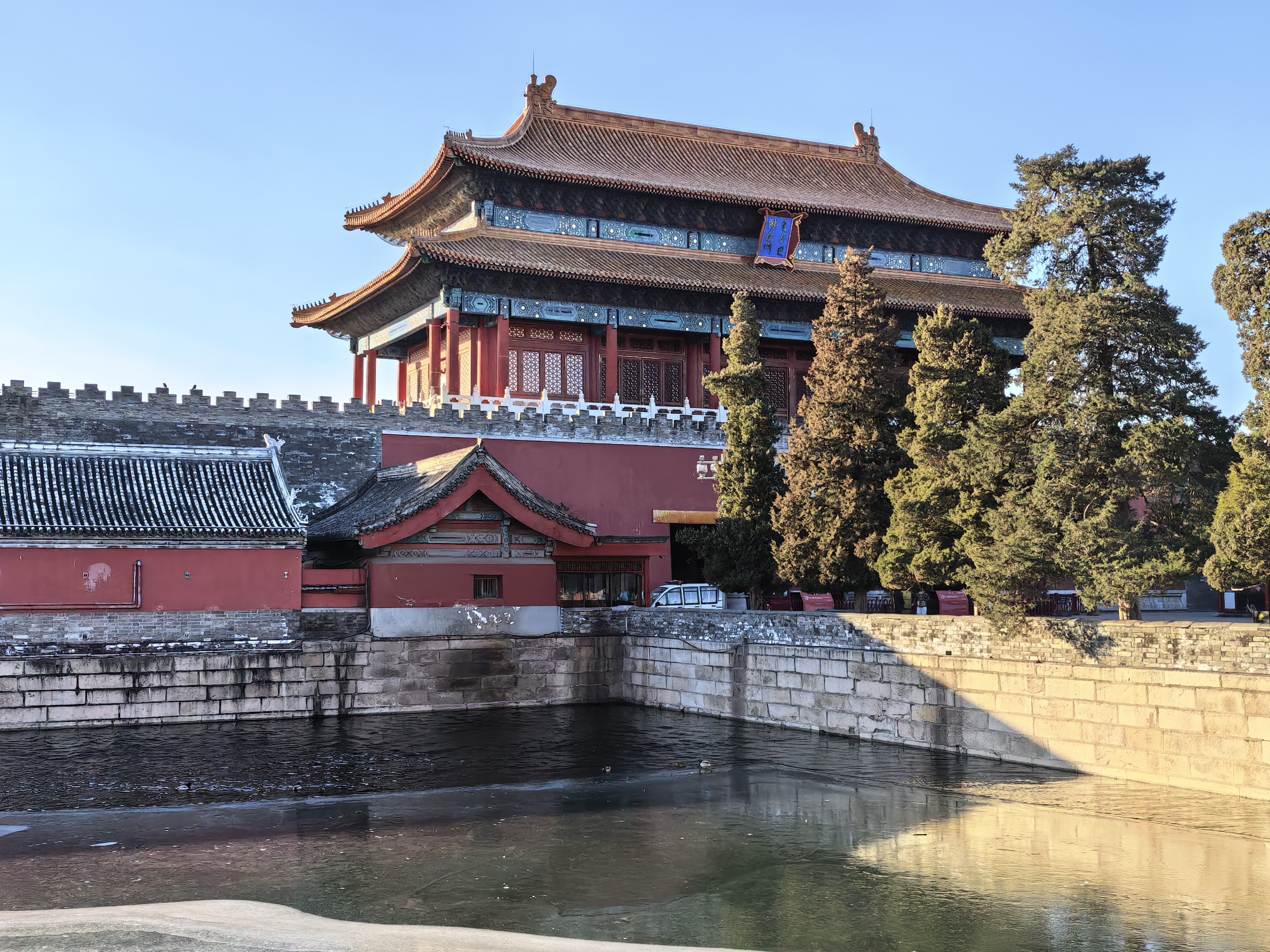 再向东,故宫角楼蓦然出现在护城河对岸。上午十时三十分,阳光正以最佳角度抚摸这座建筑奇迹。