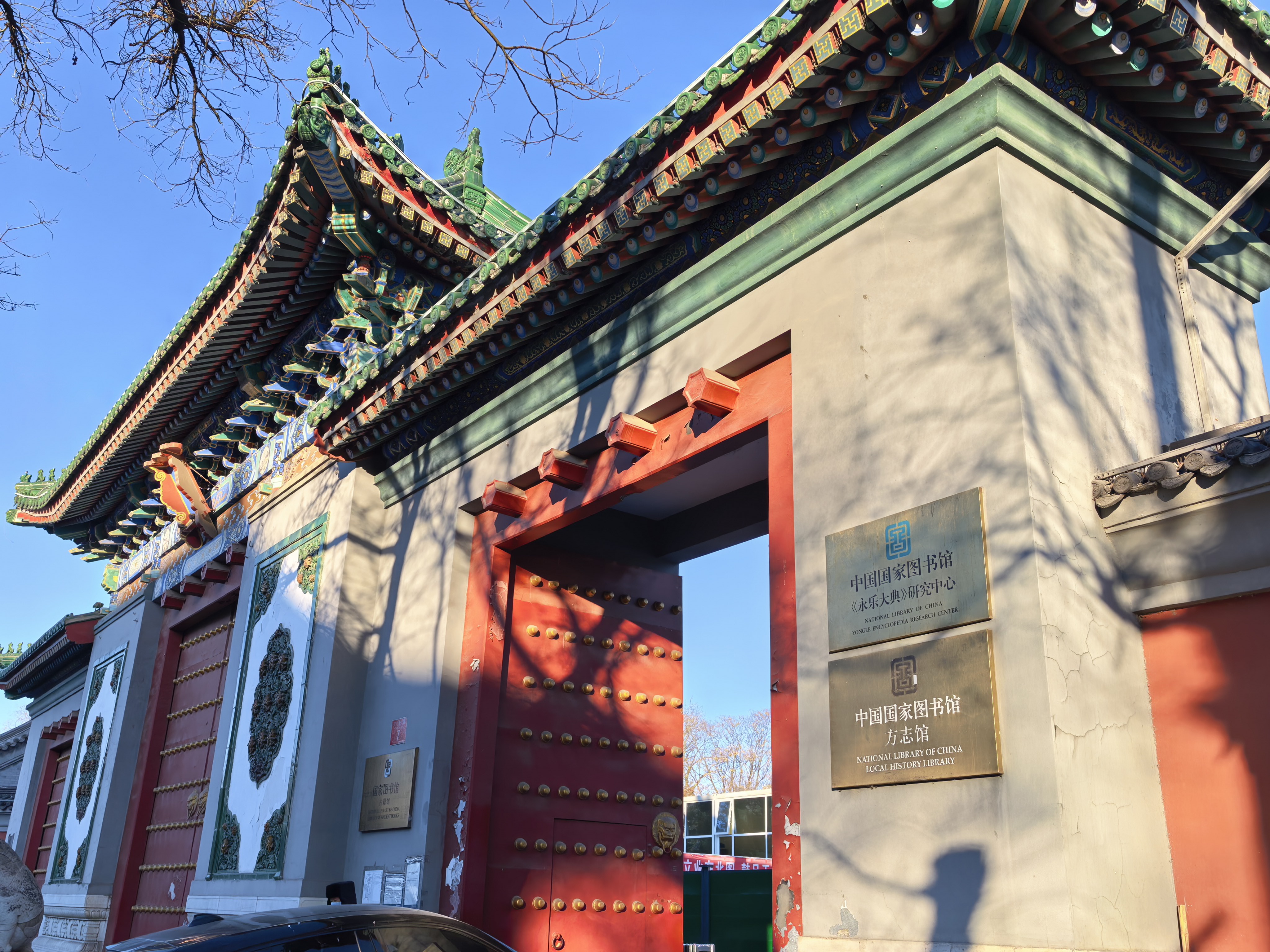 国家图书馆古籍馆的西墙最先迎接我。那是“民国”二十年的建筑(1931年),青砖在冬日阳光下泛着铁灰色的光泽。我靠近细看,发现每块砖都有独特的表情——有的沉着如墨,有的青中带紫,有的在边缘处微微发白,那是百年风霜留下的吻痕。
