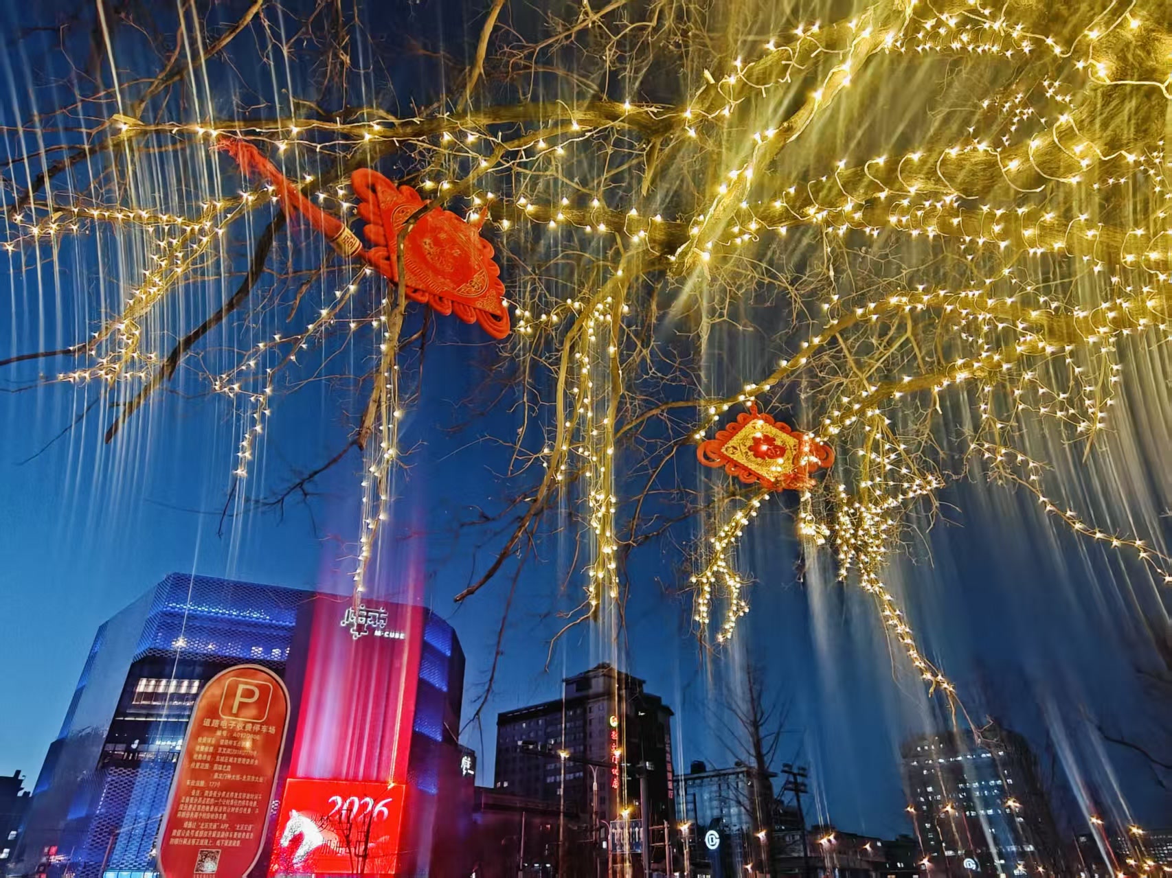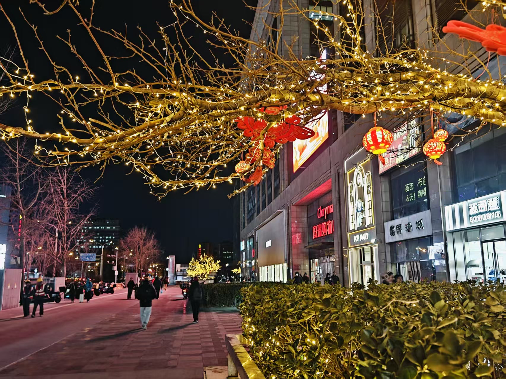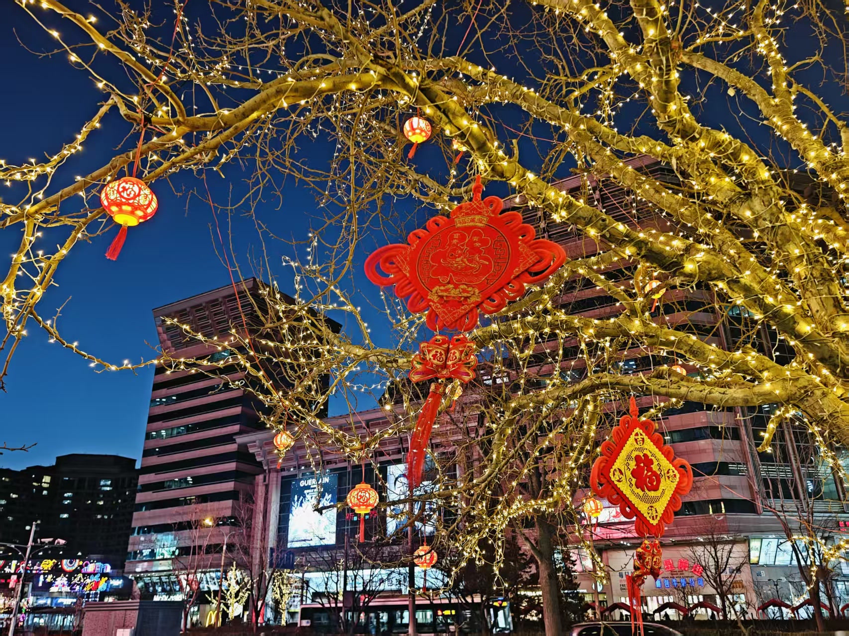 随着元旦临近,北京城的节日气氛越来越浓郁。在各大商圈内,装饰彩灯、“福”字挂饰将喜庆氛围瞬间“拉满”。
