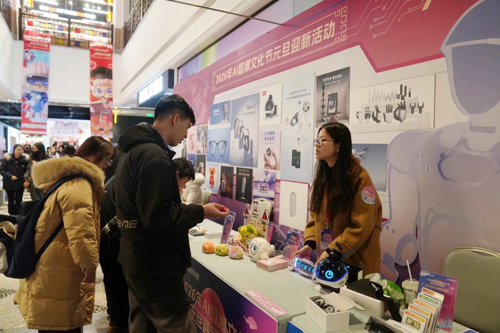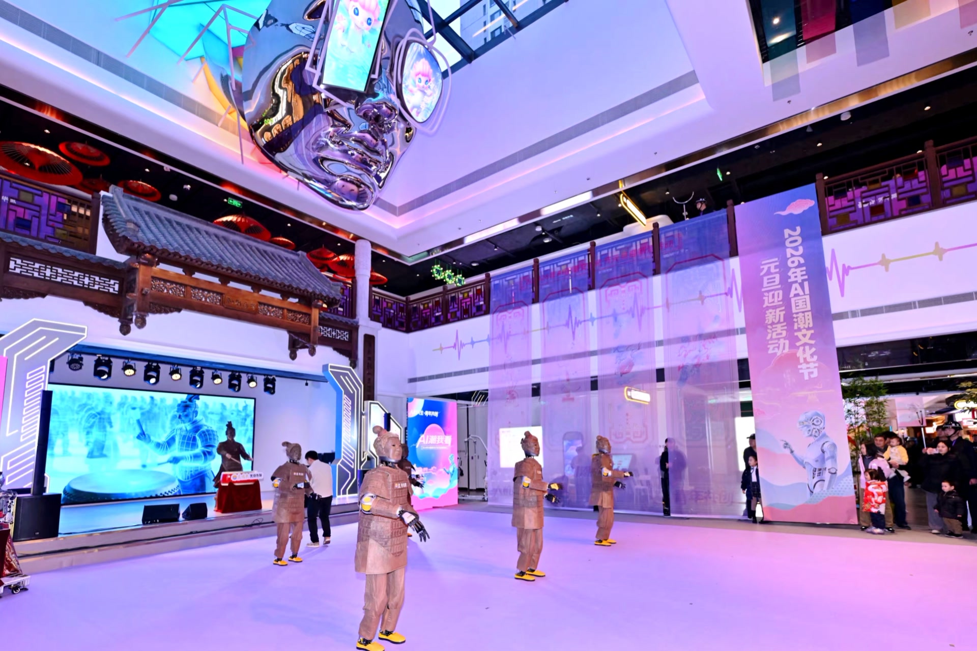 机器人兵马俑、万历皇帝游长河、大慧寺四大金刚数字彩塑……12月30日下午,“AI潮我看”2026年AI国潮文化节元旦迎新活动在海淀区紫竹院街道魏公·芳华里启动,众多文创产品以及AI设备技术现场互动展示,邀您共赴一场“人机共生 青年共创”文化科技融合的跨年活动。