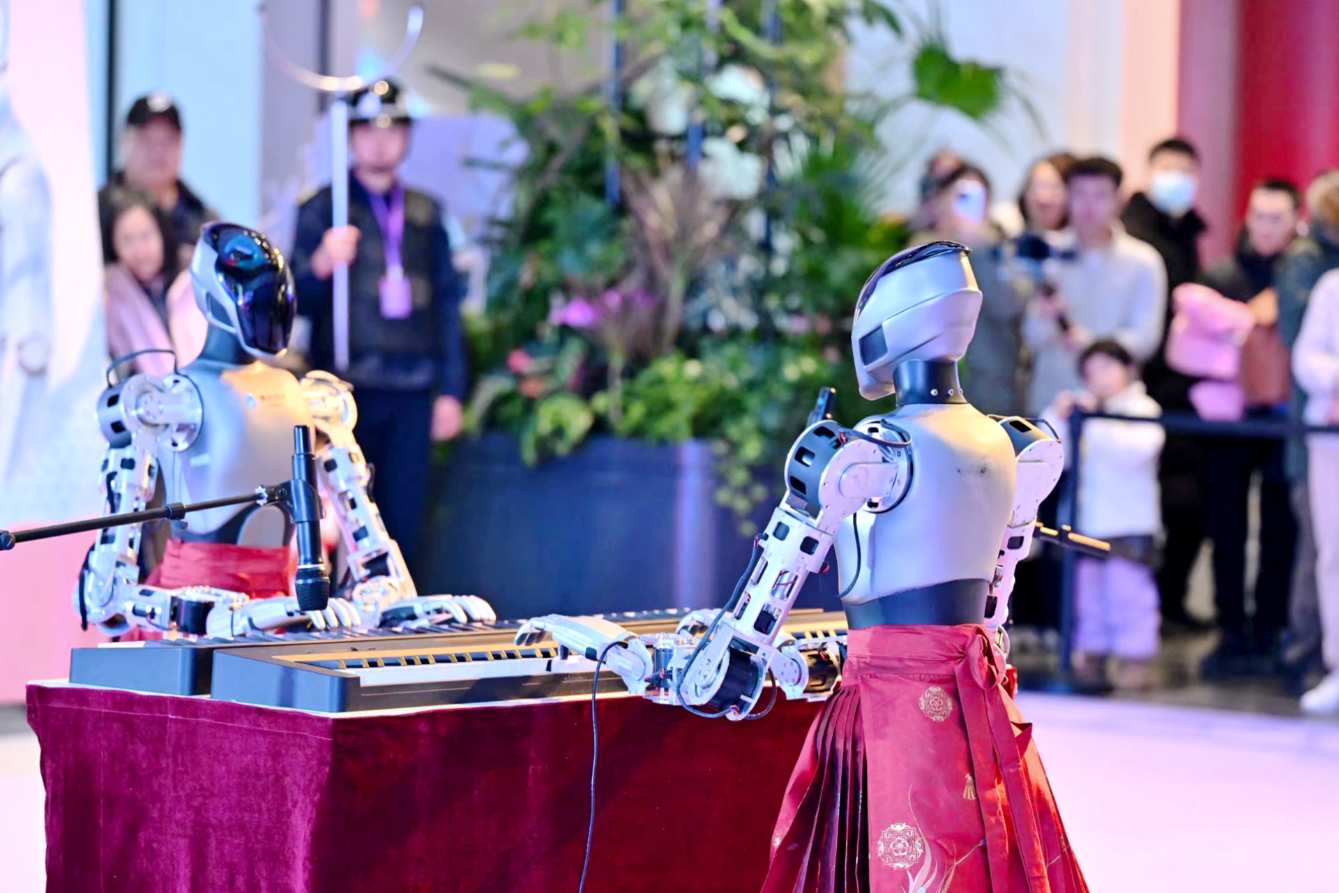 下午4时许,活动主会场,机器人变身兵马俑,在鼓声中舞得虎虎生风,这可是在2025世界人形机器人运动会上夺得金牌的人机共舞节目《秦俑魂》街区首秀。舞蹈《骏马归来》的音乐声响起,中央民族歌舞团的小伙子们在前面跳得热血沸腾,后面的宇树机器人也一板一眼地跟着舞动,颇有些“奔腾”的感觉。此外,还有机器人打太极、机器人弹钢琴等节目,为市民和游客献上一场精彩的表演。