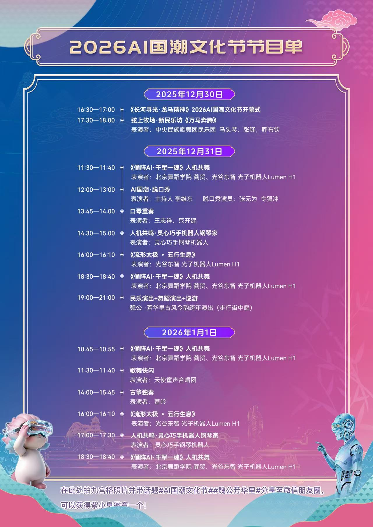 据悉,2025年12月31日10时至22时、2026年1月1日10时至22时,AI国潮文化节将持续在魏公·芳华里举行。