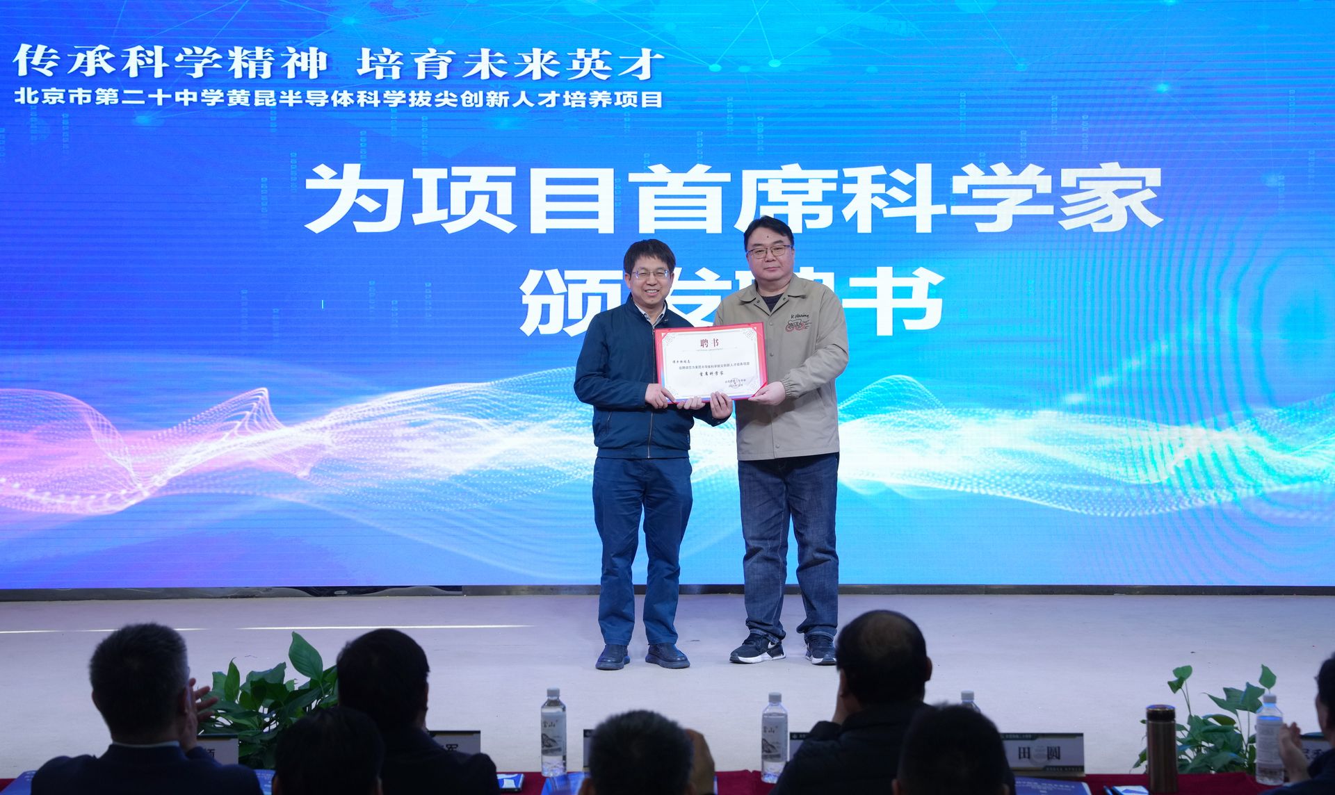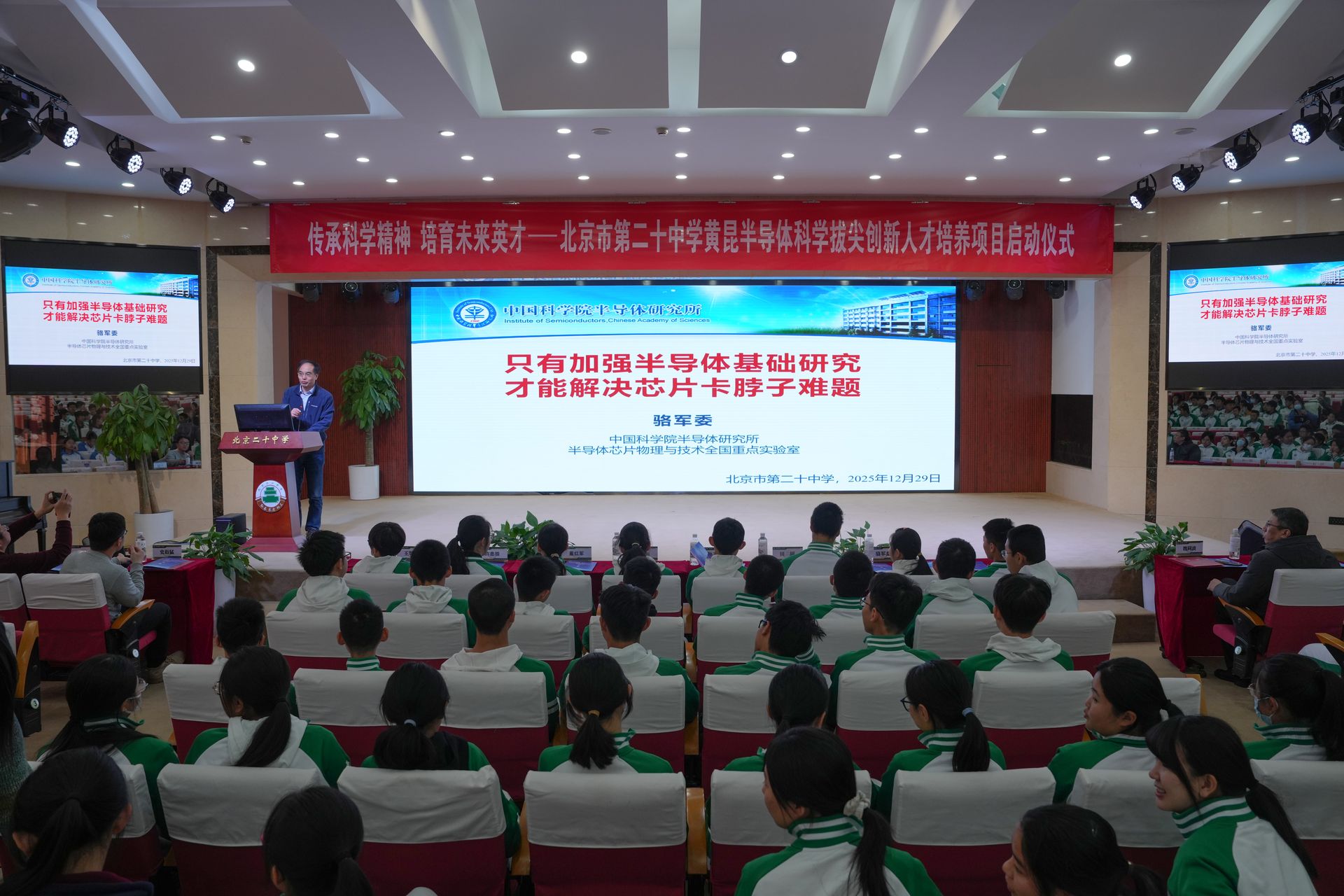 12月29日,北京市第二十中学与中国科学院半导体研究所联合启动“黄昆半导体科学拔尖创新人才培养项目”,通过构建特色课程、创办“黄昆少年班”、探索大中贯通培养模式,培养志在报国、具有创新潜能的拔尖创新人才。该项目以我国半导体物理学奠基人、国家最高科学技术奖获得者黄昆先生的名字命名,由中国科学院半导体研究所所长谭平恒担任首席科学家。“黄昆少年班”是继中国科学院半导体研究所与全国24所高校合作成立“黄昆英才班”之后,在中小学成立的首个半导体实验班。