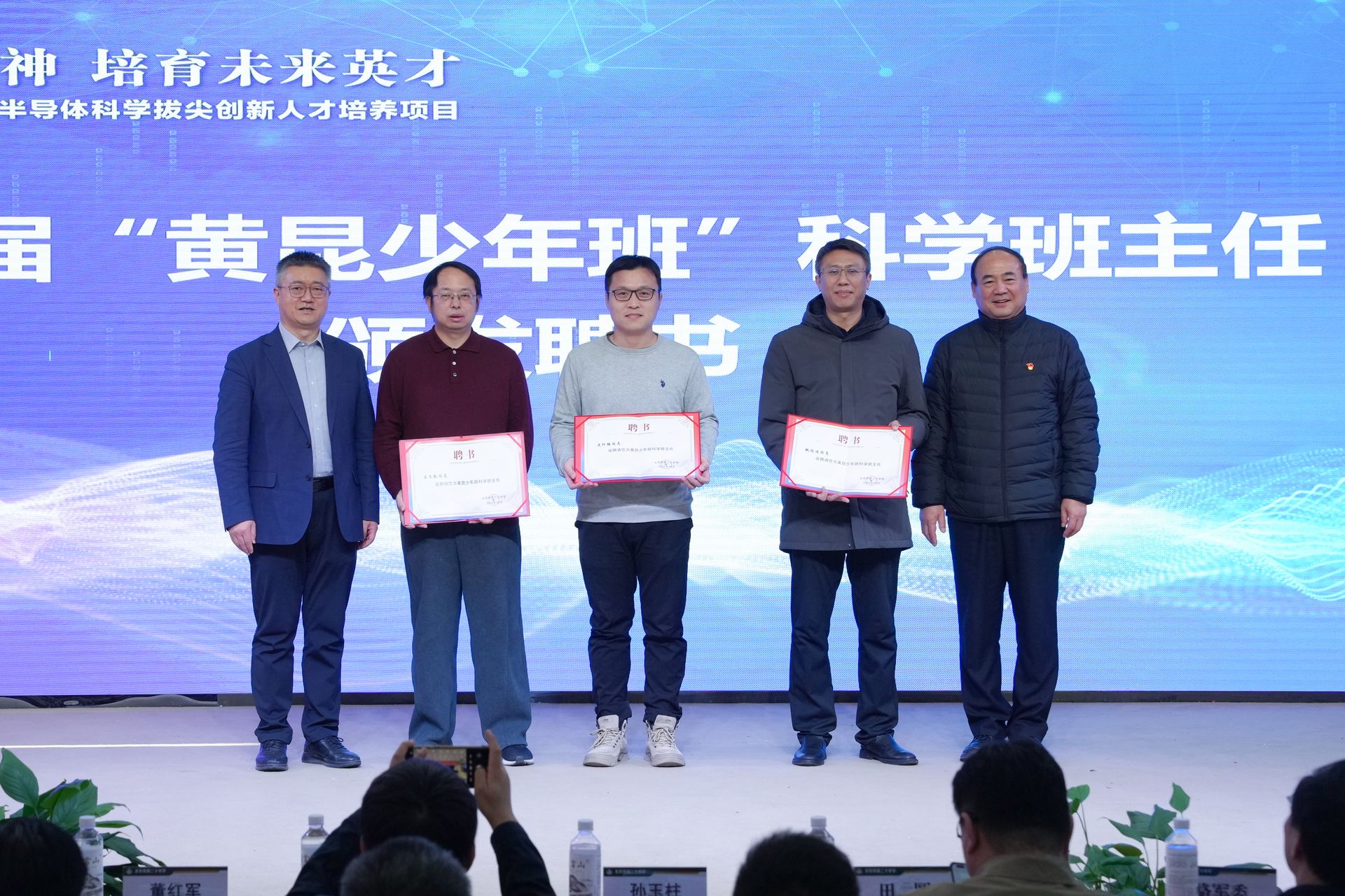 启动仪式上,谭平恒向北京二十中颁授“黄昆少年班”铭牌,并受聘担任学校黄昆半导体科学拔尖创新人才培养项目首席科学家。北京二十中教育集团党委书记孙玉柱、校长董红军为中国科学院半导体研究所研究员史衍猛、魏同波、娄文凯颁发“黄昆少年班”科学班主任聘书。