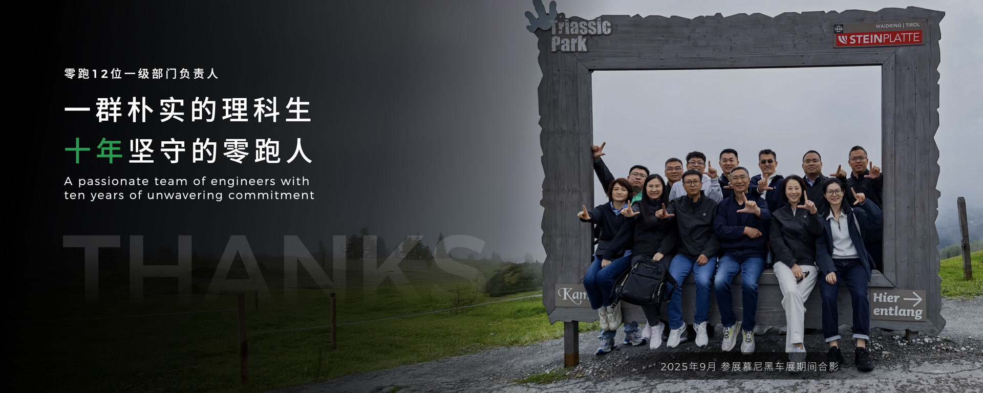 创始人往往决定了一家企业的底色。朱江明身上兼具务实、朴实、谦逊的品格,又带着浙江企业家特有的精打细算,这份特质也赋予零跑务实进取的企业基因。志同道合者终将同行。在十周年发布会上,朱江明给几千人的工程师团队打出的标签是“朴实、低调、认真、勤奋、高效”,零跑的12位一级部门负责人都是朴实的理科生,也是十年坚守的零跑人。正是这样一群踏实稳定,深度认同相同企业文化的核心力量,构成了企业的主心骨,零跑的品牌文化也不言自明。