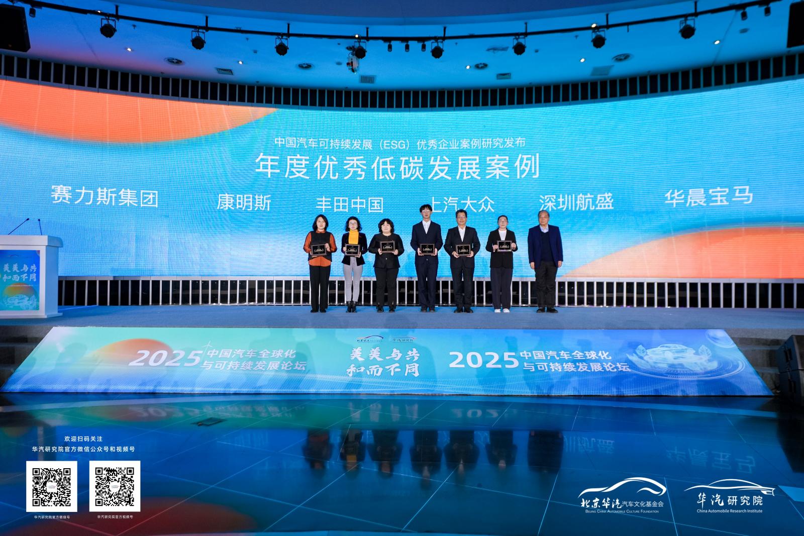 论坛期间,华汽研究院联合罗兰贝格、商道咨询分别发布《中国汽车全球化发展报告2025》《中国汽车可持续发展蓝皮书2025》,系统梳理了中国汽车产业全球化可持续发展目标下的发展机遇、现实挑战及实践路径,并通过赛力斯、康明斯、丰田中国等企业的优秀案例,呈现了汽车企业在ESG管理、绿色低碳与社会责任方面的实践。