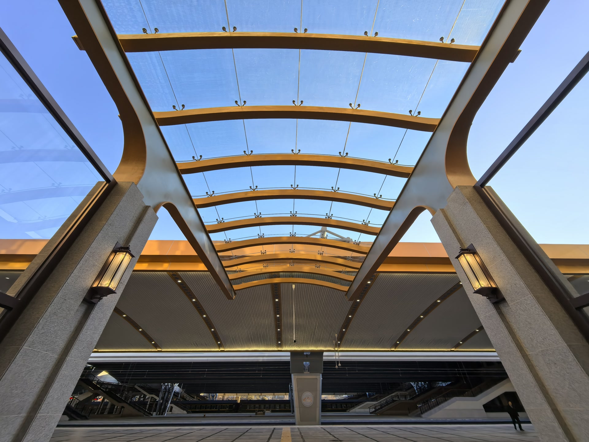 近日,从北京站上下车的旅客行至站台处抬头就能发现,头顶的雨棚不再是冰冷的工业建筑,不仅更加安全实用,“颜值”也大大提升——棚顶“琉璃黄”与“象牙白”的颜色组合,延续“中华第一站”的庄重典雅;连续景观灯带顺势铺展,亮起时如点点星光串联成线。雨棚还变得更“聪明”,其中藏着不少科技奥秘。