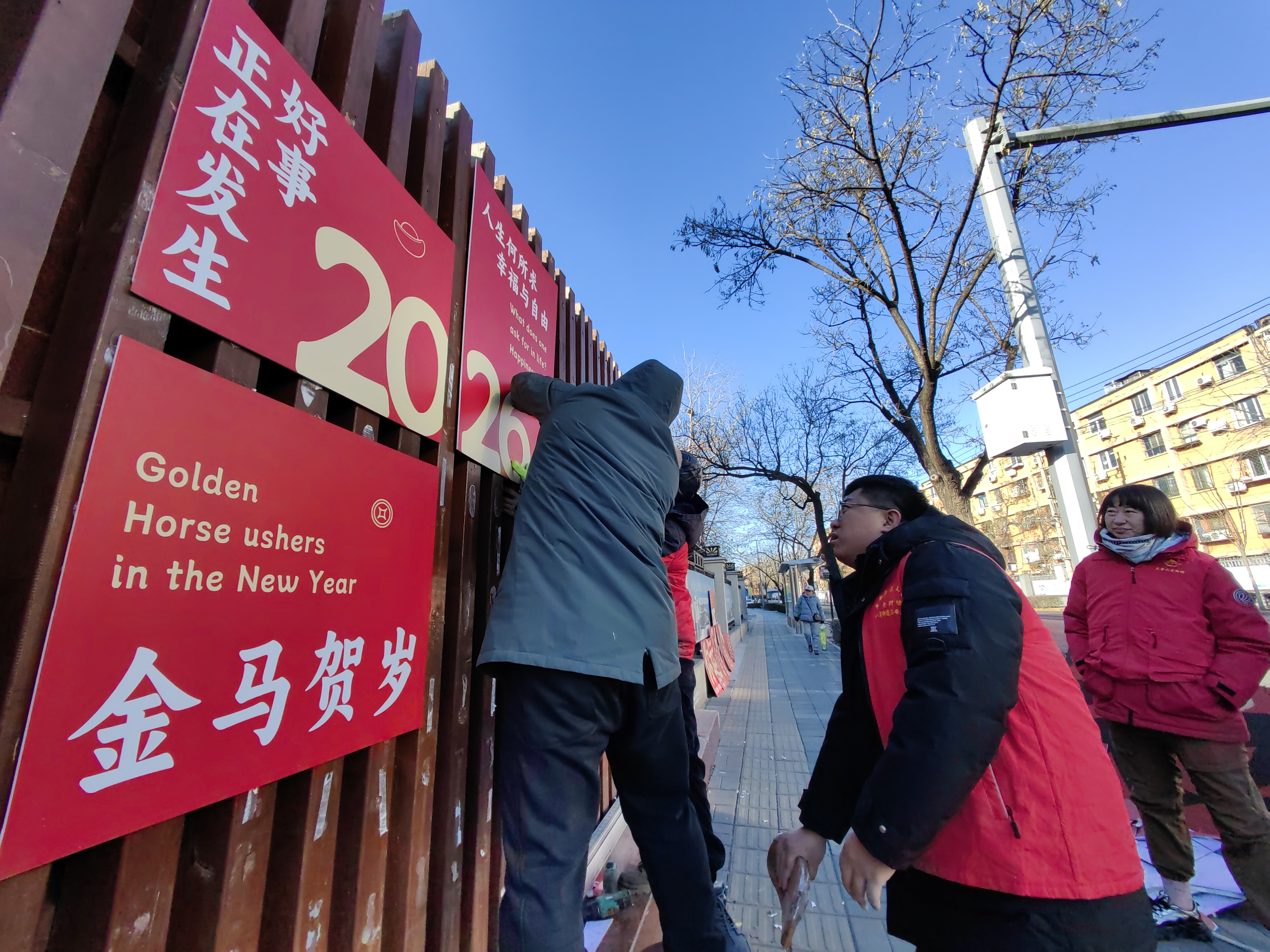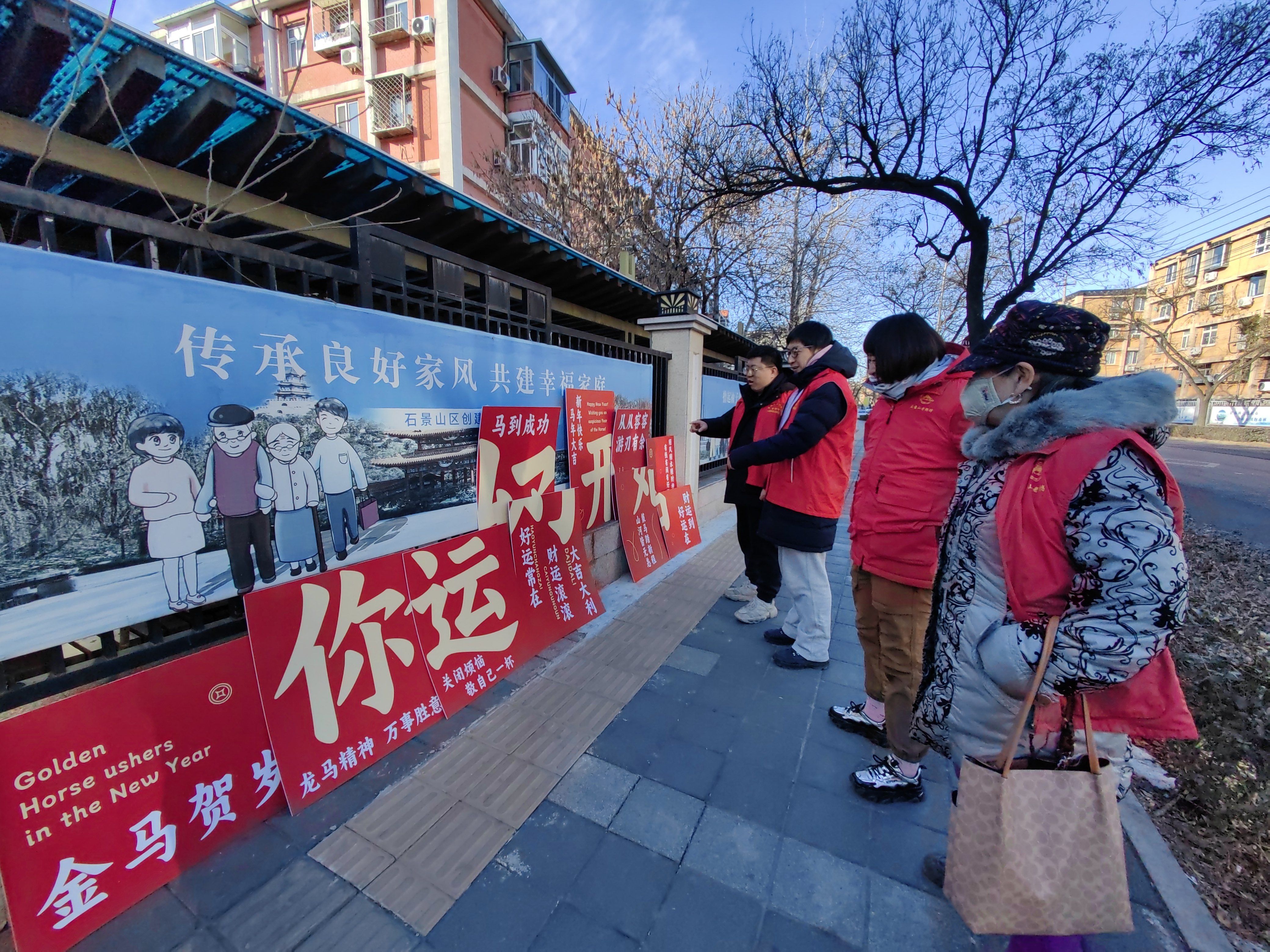 12月31日,石景山区八角街道八角南路社区工作者和居民们携手行动,共同拼装家门口的新年祝福墙。大家以墙为媒,以福为引,用双手传递温情,用协作凝聚力量,让简约的布设充满烟火气与归属感,一同开启新年好运势。