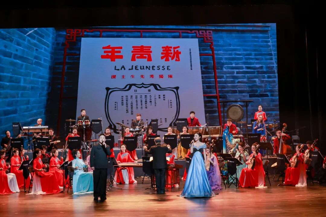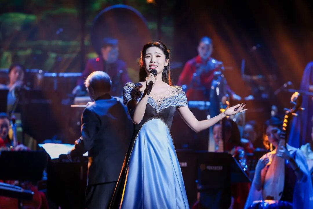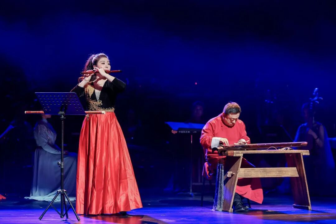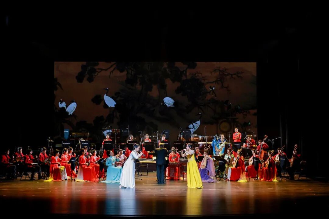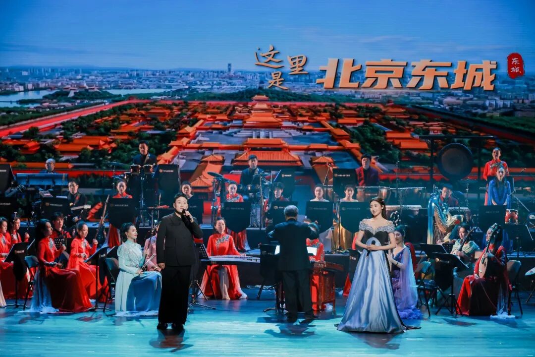 演出伊始,乐曲《辉煌》以恢弘激昂的旋律奏响开篇,瞬间点燃现场气氛;紧随其后的《紫禁城》,用悠扬曲调勾勒千年古都的庄重与典雅,诉说东城深厚的历史文脉。女声独唱《万疆》旋律婉转、情感真挚,传递出对祖国山河的深情眷恋;乐曲《流沙》以二胡、中阮等乐器的精妙配合,营造出空灵悠远的意境;《鹤唳松山》中古琴与竹笛的交织,尽显东方音乐的清雅意境。唢呐二重奏《百鸟朝凤》节奏明快、喜气洋洋,将民间艺术的鲜活生命力展现得淋漓尽致;男声独唱《鸿雁》意境开阔、韵味悠长,引发观众情感共鸣。笛子与乐队演绎的《秦川抒怀》《扬鞭催马运粮忙》,旋律时而悠扬婉转、时而轻快激昂,展现出浓郁的地域风情;京胡与乐队《夜深沉》将京剧韵味与民族器乐完美融合,京胡的高亢与乐队的厚重相得益彰,尽显传统艺术的博大精深;乐曲《赛马》节奏紧凑、气势磅礴,仿佛将观众带入万马奔腾的壮阔场景。特别呈现的男女二重唱《爱相融》成为整场演出的温情亮点。青年歌唱家邵美含、于浩深情对唱,歌声中流淌着东城的人文温度与城市品格,诠释了“古今辉映、宜居乐活”的美好愿景,赢得全场经久不息的掌声。