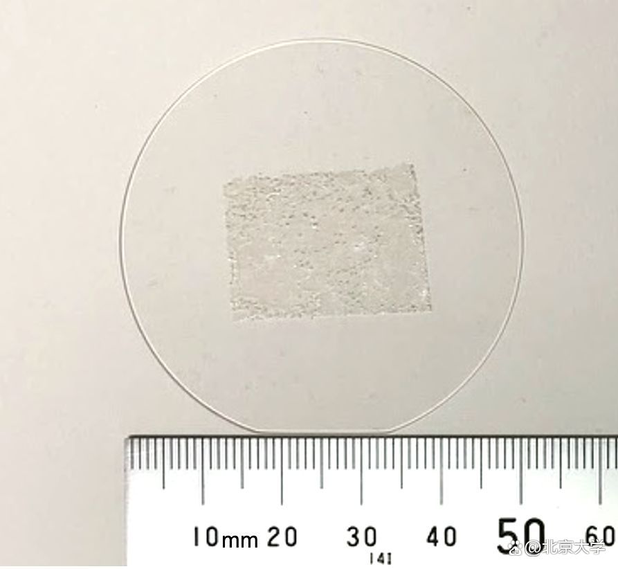 这是制备的氮化硼光学晶体照片,照片中间长方形的样品区域是氮化硼材料。新华社发(作者供图)