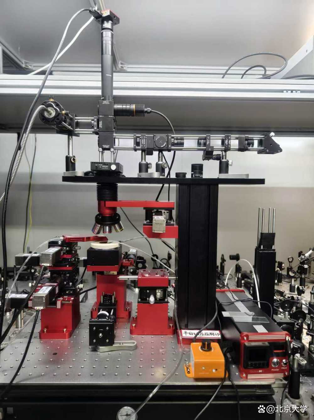 这是自主搭建的高精度半自动原位转角叠层光学晶体转移台,可进行光学晶体高精度转角堆叠并实时监控激光输出效率,最终实现高效转角光学晶体构建。新华社发(作者供图)