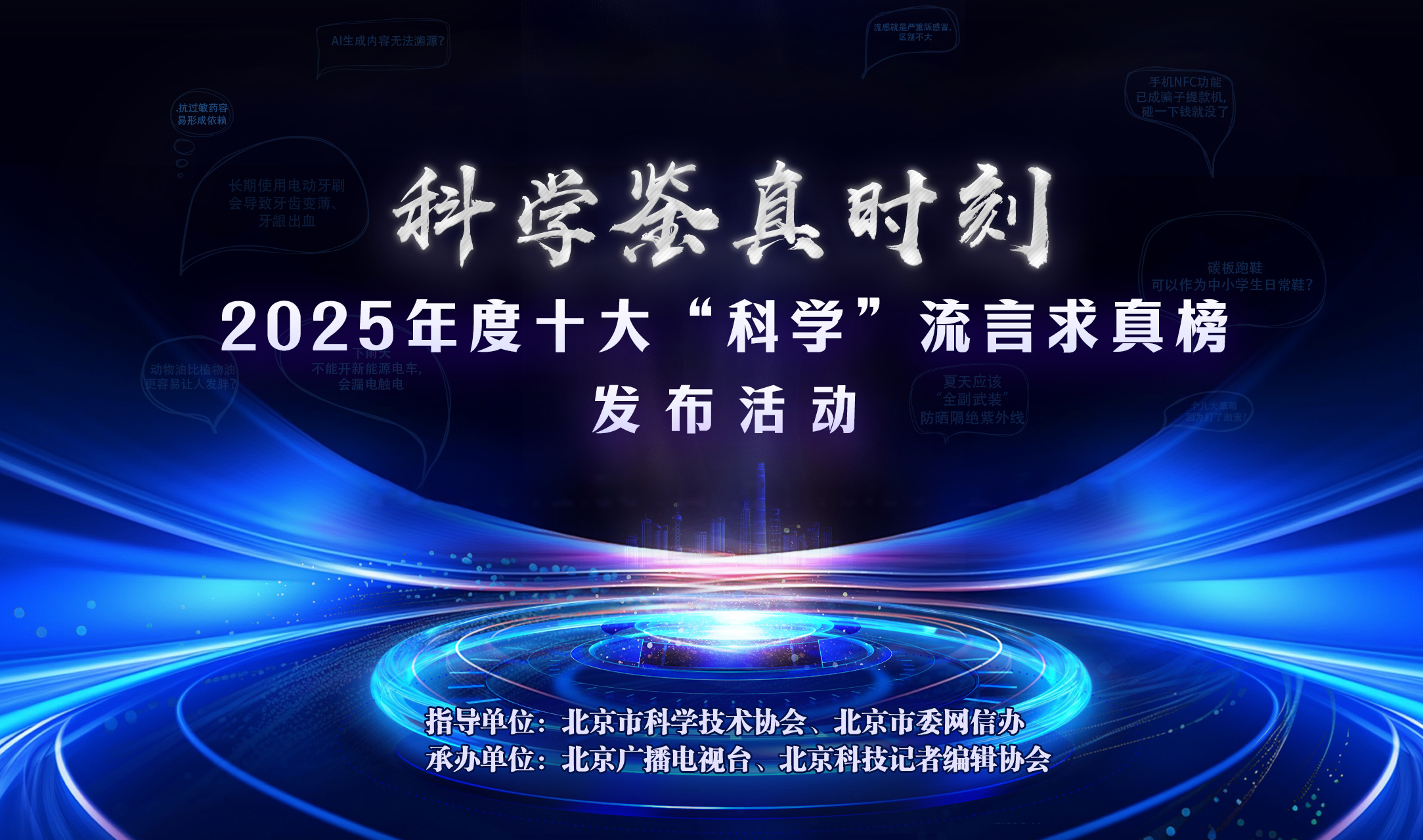 12月31日,“科学鉴真时刻——2025年度十大‘科学’流言求真榜”在京发布。该活动由北京市科学技术协会、北京市委网信办指导,北京广播电视台、北京科技记者编辑协会承办。现场特邀权威专家组成科普团队,针对网络热议的年度十大“科学”流言进行深度剖析与辟谣,助力公众提升信息甄别能力。