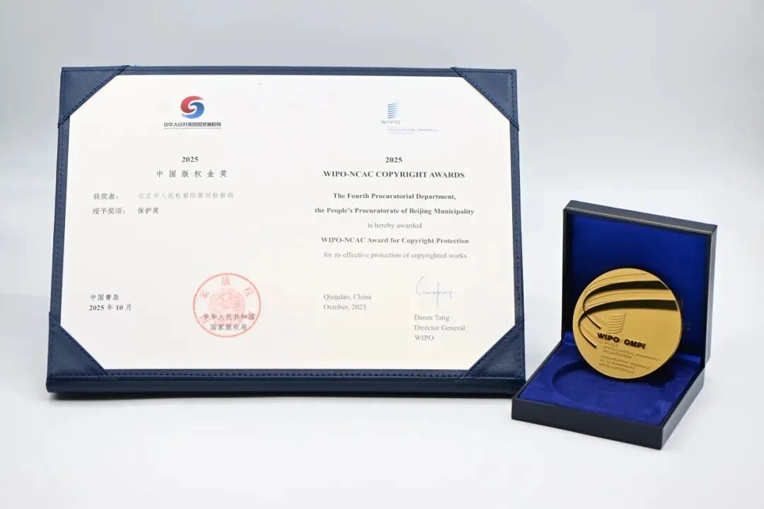 2025年9月29日,国家版权局公布2025年中国版权金奖获奖名单,市检察院第四检察部荣获2025年中国版权金奖保护奖。中国版权金奖由国家版权局和世界知识产权组织共同主办,每两年评选一次,是中国版权领域最高奖项,也是中国版权领域唯一的国际奖项。