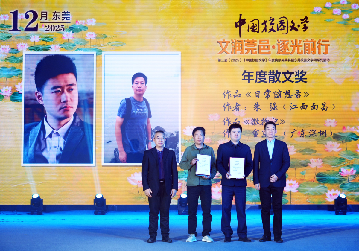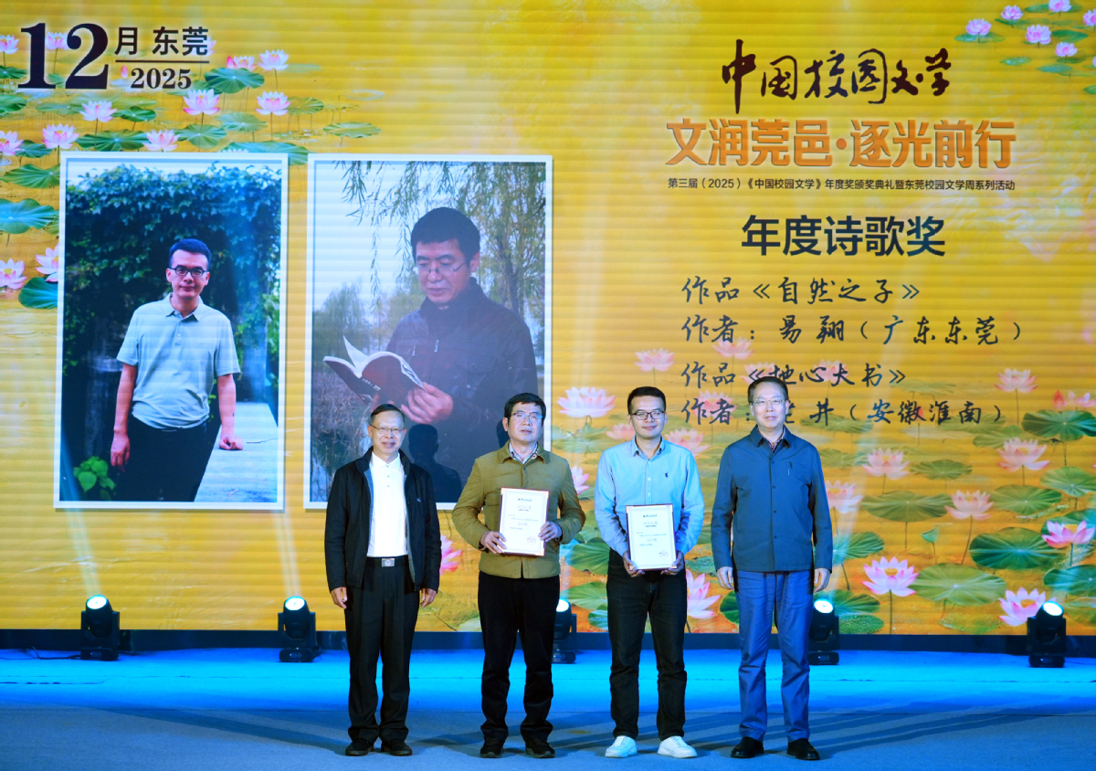 《中国校园文学》年度奖是中国作家协会旗下刊物《中国校园文学》设立的校园文学奖项,每年评选一次,代表刊物最高荣誉。2025年,该奖项落户东莞。此次年度奖以2025年《中国校园文学》发表的作品为评选对象,由编辑部初评,评审委员会终评,评选出许晓敏、朱强、易翔等25人获得小说奖、散文奖、诗歌奖等7个奖项。获奖作品兼具青春质感与时代意识,既有鲜活的校园生活写照,也有开阔的想象空间与深刻的现实关怀,集中展现新时代校园文学的创作高度,为青少年文学爱好者搭建成长阶梯,为中国文学培育新生力量。