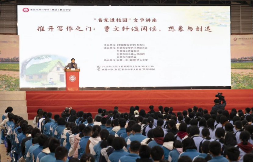 值得一提的是,国际安徒生奖得主、北京大学教授曹文轩当天走进东莞一中(集团)桥头中学,以“推开写作之门:谈阅读、想象与创造”为主题,为师生们带来一场启迪心灵的讲座。他鼓励同学们以阅读为“弓”、写作为“箭”,保持对世界的好奇与感知,勇敢地将个人独特的观察、体验与想象付诸笔端。面对AI创作,他赠言“死磕”,鼓励学生坚守创作初心。