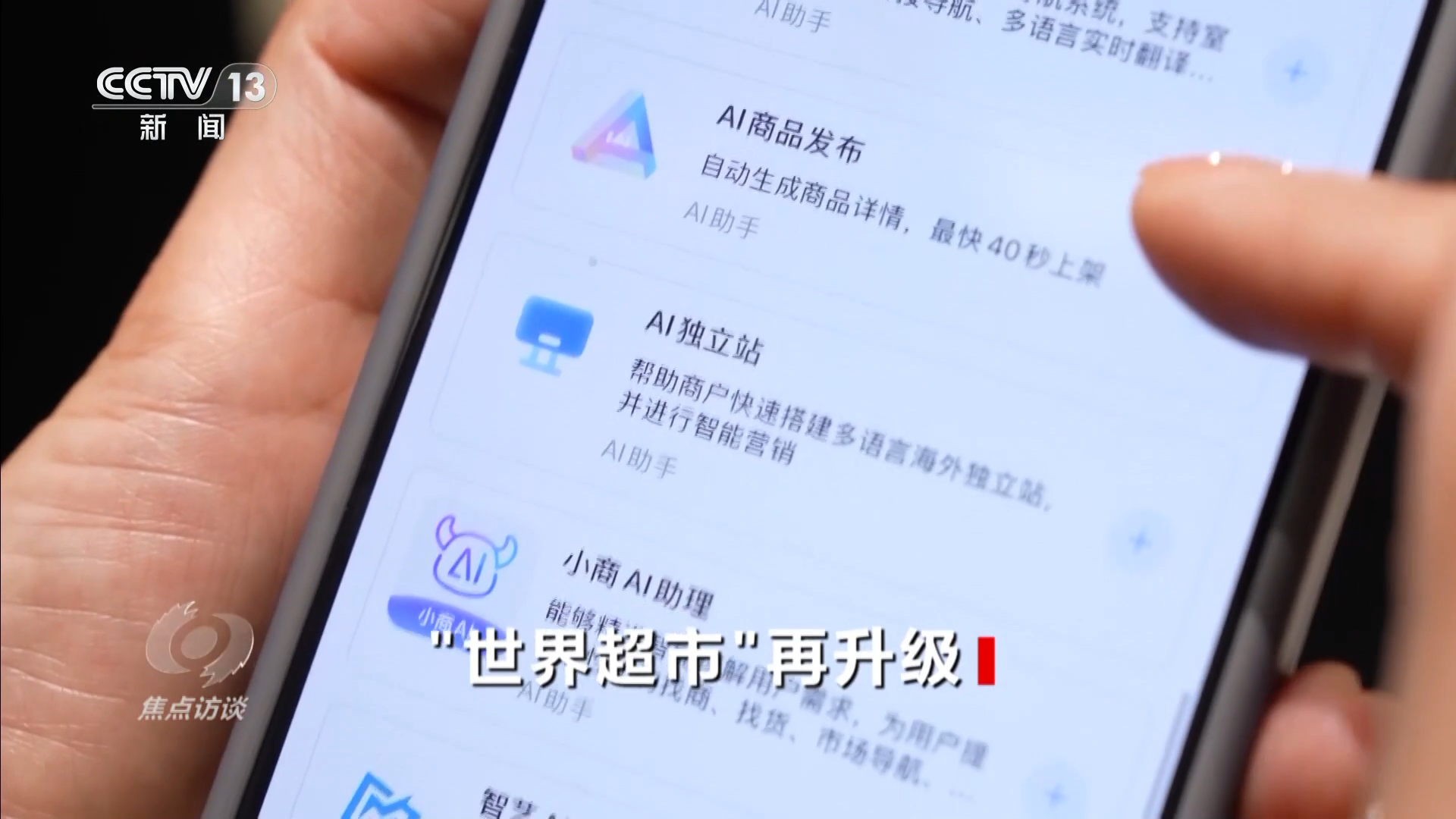 义乌新的第六代市场已经实现了全面的数智化升级,在数字平台上共推出了13款专门为买卖双方设计的AI工具,成了商户们的“全能助理”。商品想卖给老外,但语言不通?数字名片帮你一键翻译成十几种语言。采购商对设计有新想法?AI辅助设计工具立刻生成3D效果图,调整细节分分钟搞定……再加上先进的万兆光网和跨境数据传输专线,商户们直播卖货到全球,畅通无阻。
