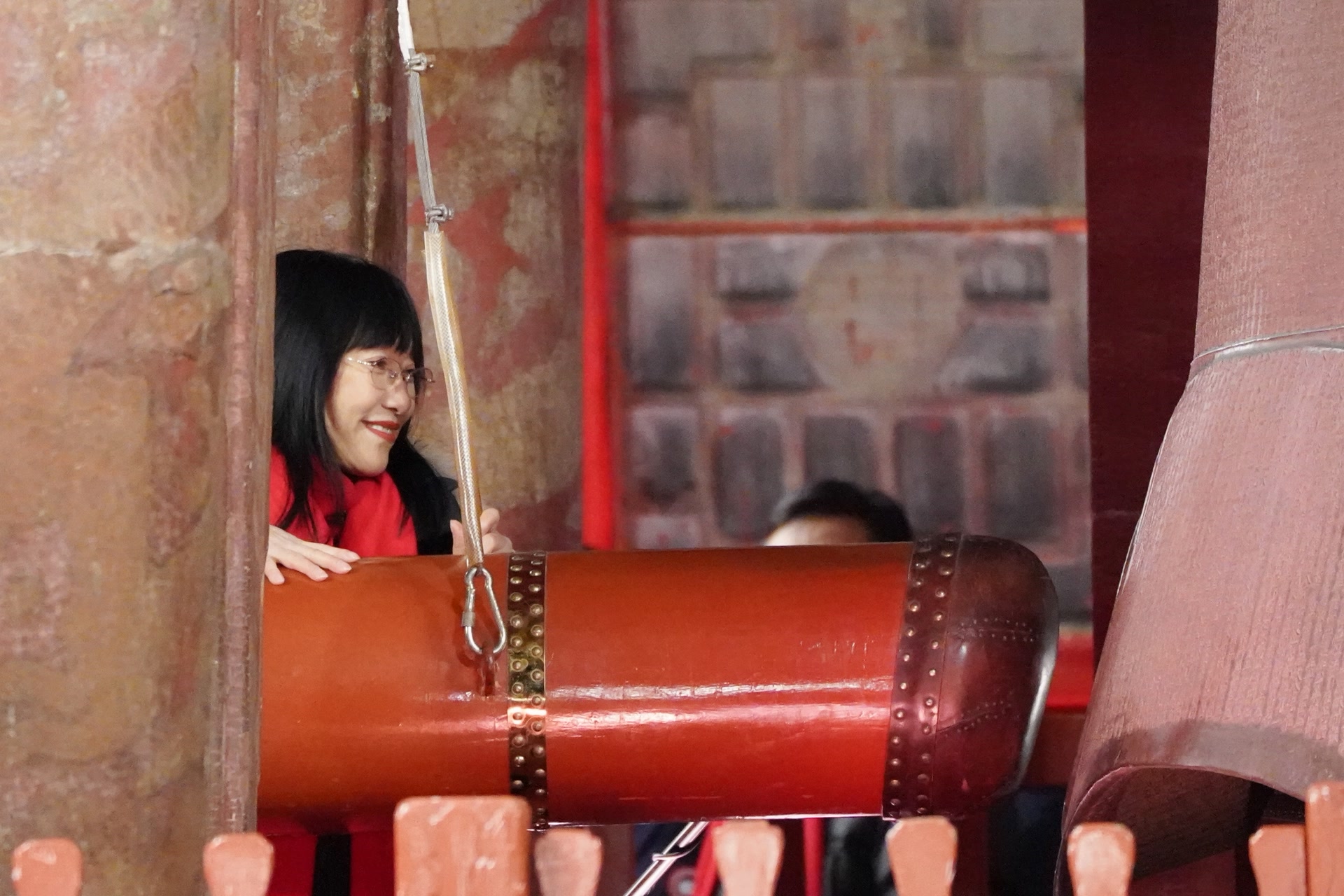 在大钟寺古钟博物馆,72位来自各行各业的代表在零点时刻共同敲响已有600年历史的永乐大钟。每逢辞旧迎新之时的108声钟鸣,寓意着一年12个月的轮回、24节气的流转、72物候的变幻。每一声钟鸣,都寄托着对“国泰民安”的诚挚祈愿。这场响彻全城的“钟鼓齐鸣”,是对古都文脉的深切呼应,也象征着新征程的铿锵启程,凝聚着全市乃至全国人民对新年共同的期盼与憧憬。