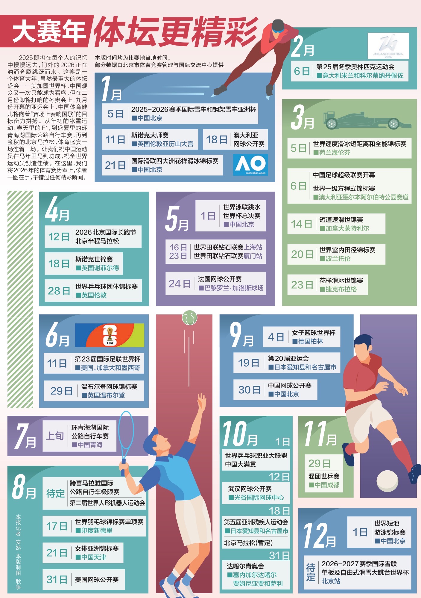 让我们祝中国运动员在马年里马到功成,祝全世界运动员创造佳绩!在这里,我们将2026年的体育赛历奉上,希望您不会错过任何精彩瞬间。