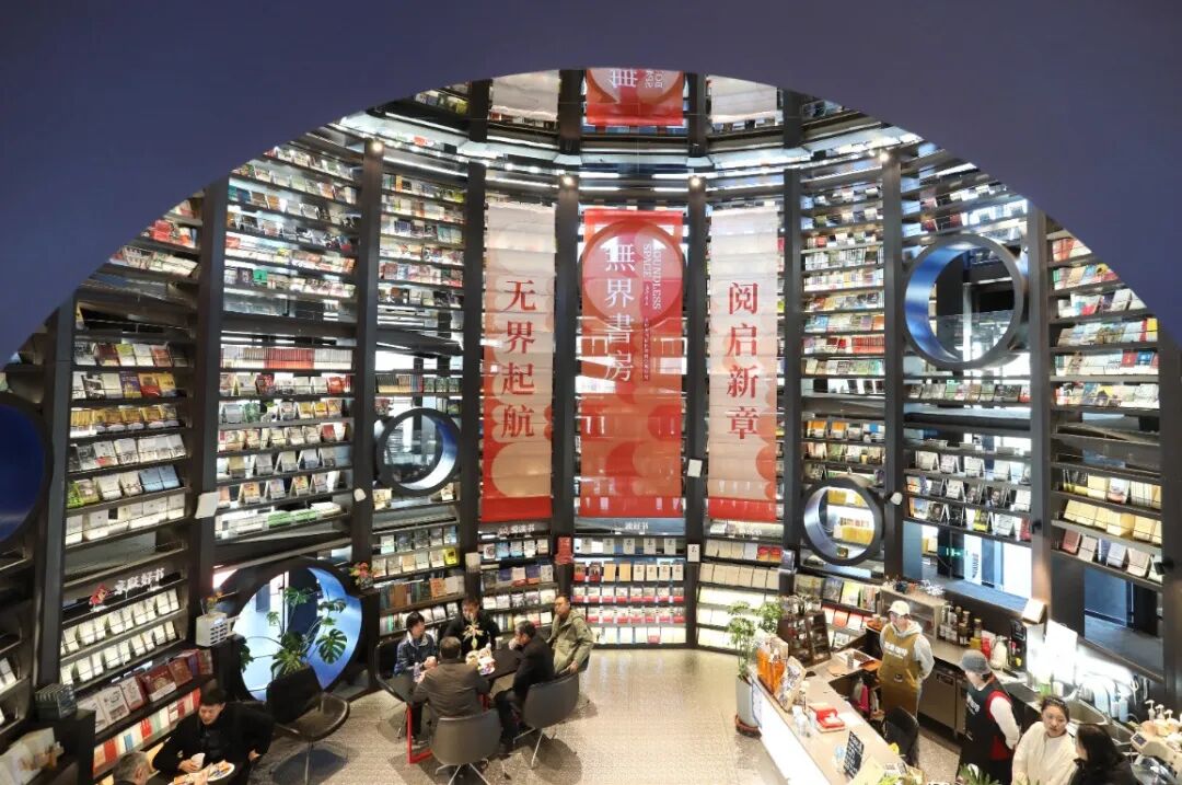 王府井无界书房让商街更具书香气。书房远观造型酷似一座微缩版科学装置,推门而入,书香与咖啡香裹挟着暖意扑面而来。7.2米纵深空间被打造成宇宙秘境,螺旋坡道如星河轨迹蜿蜒向上,开放式格局既保证采光通透,又暗藏“无界融合”的设计巧思。“怀柔礼物”展示区域则实现文化空间与本土文旅资源的有机衔接。