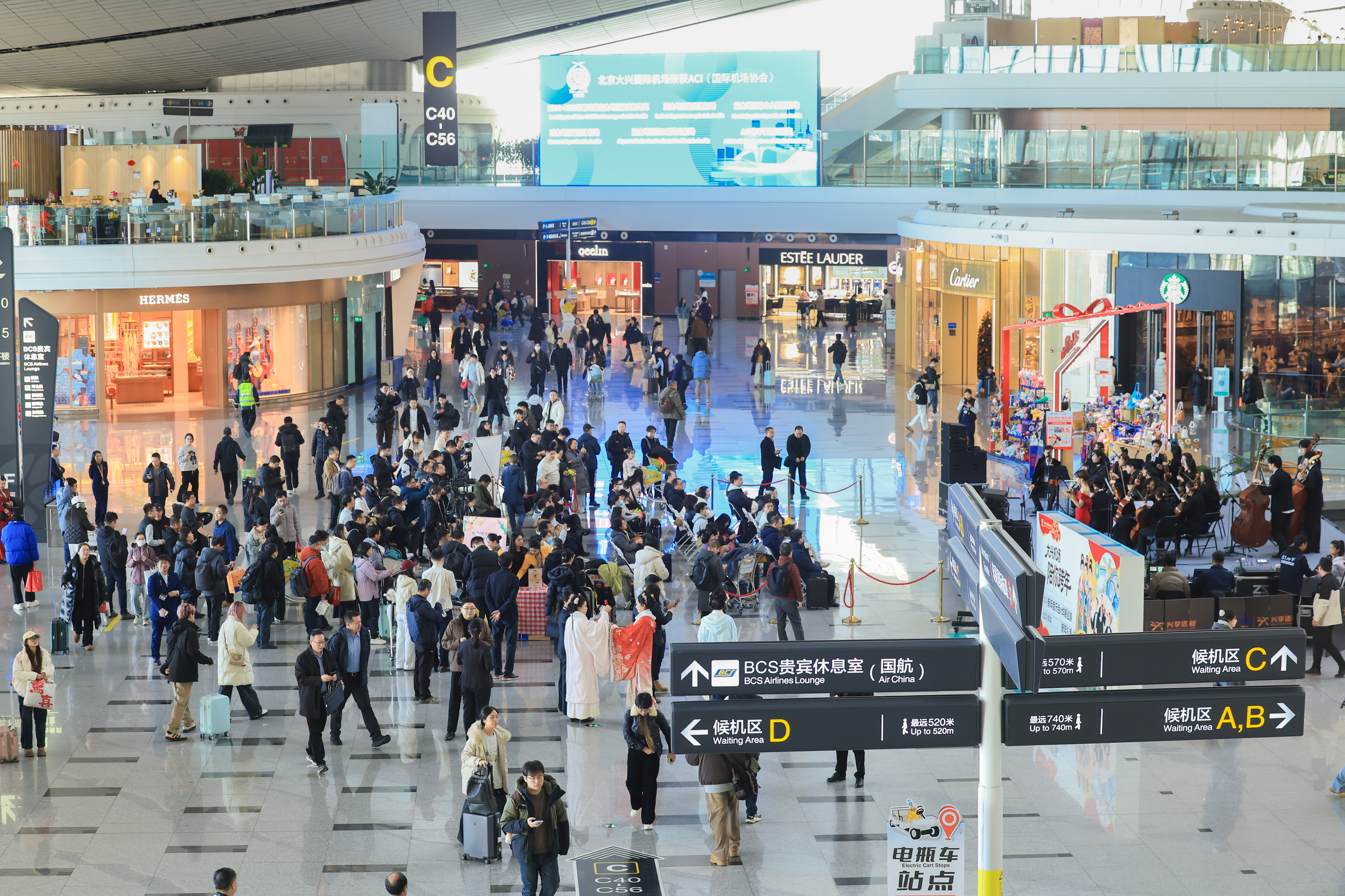 2025年以来,大兴机场国内外航线网络不断织密,目前已入驻航司达71家,客运航司执飞航线约180条,其中国内航线140余条,国际及地区航线约40条,连通欧洲、亚洲、非洲等25个国家,陆续开通或加密卡萨布兰卡、斯里巴加湾、胡志明市、杜尚别、马斯喀特、布拉戈维申斯克等多条国际航线。大兴机场中转旅客量较2024年同比提升约12%,“国内通程航班服务管理平台”经大兴机场中转的国内航班备案数量超过6300对,通程旅客运输量排名全国枢纽机场首位。