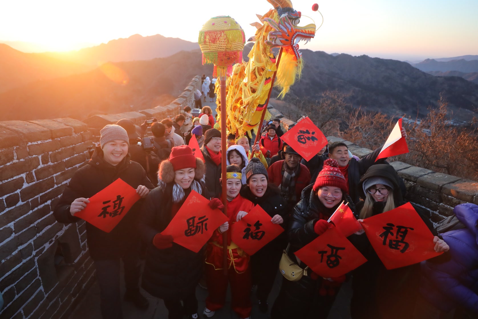 2026年1月1日清晨,北京慕田峪长城举行元旦观日出祈福活动。近千名游客在凛冽山风中登上古老长城,共同迎接新年第一缕阳光。