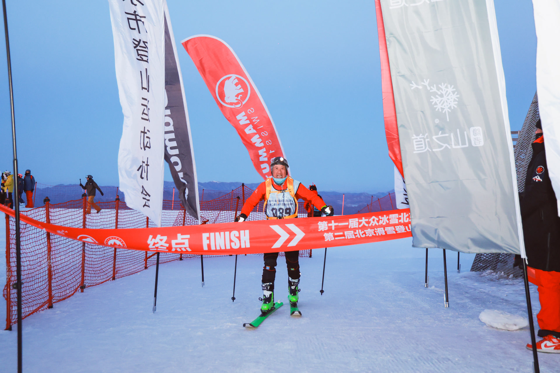 最终,多数选手在7时30分之前抵达了终点——位于小海陀山巅的“雪飞燕”广场。此时已晨曦微露,大伙儿顾不上严寒,聚集到观景平台。随着新年的太阳第一次“露头”,人群中发出阵阵欢呼,有人拨通了家人的视频电话,有人与身边的伙伴击掌、拥抱,有人高喊出新年愿望。“祝儿子、闺女考上理想的学校,身体健康,万事如意!爸爸妈妈爱你们!”绰号“大魔王”的滑雪登山资深玩家李铭以日出为背景,录下了祝福家人的视频。他说,作为北京人,自己此时心潮澎湃,“我连续参赛两年了,明年还会来!”