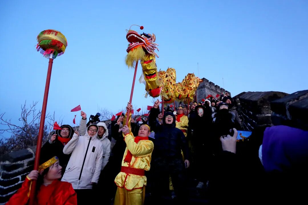 6时20分,活动准时开启,红歌传唱快闪《我和我的祖国》《歌唱祖国》等经典旋律在山间回荡,昂扬歌声为新年注入奋进力量;紧接着,雄浑的大鼓声震天响起,为长城日出营造氛围。
