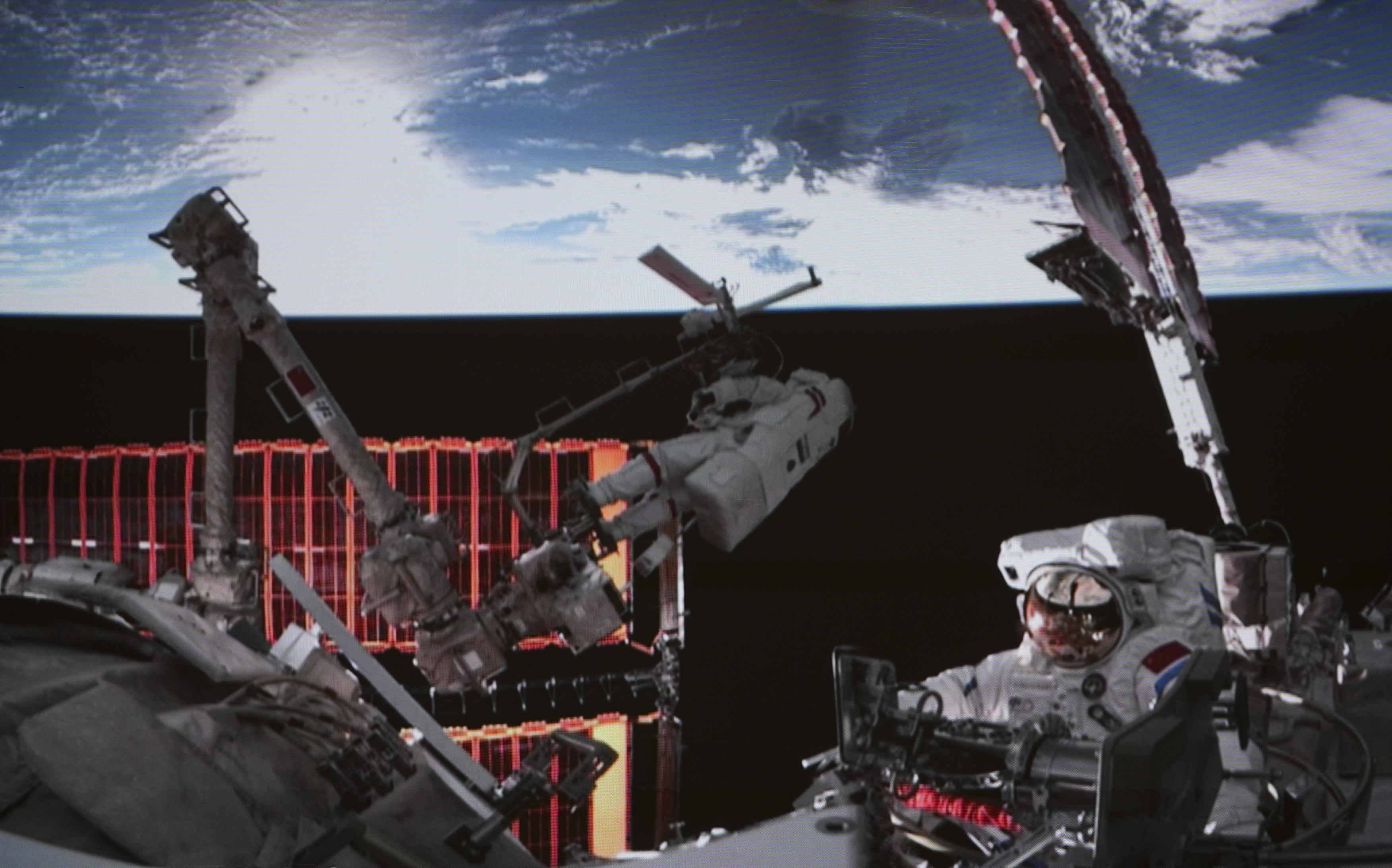 2025年12月9日,神舟二十一号乘组航天员张陆、武飞、张洪章密切协同,圆满完成第一次出舱活动。新华社记者 刘艺 摄