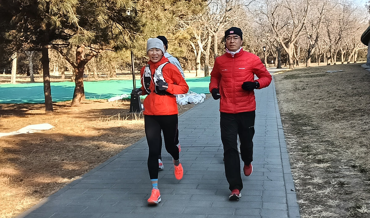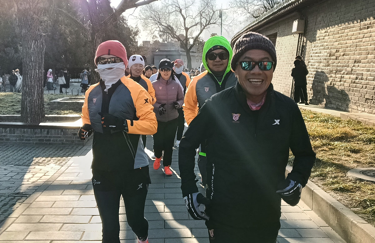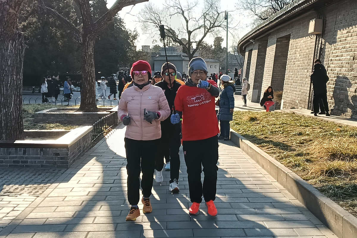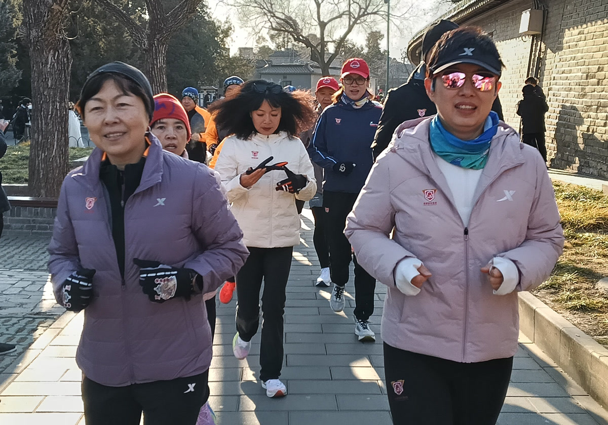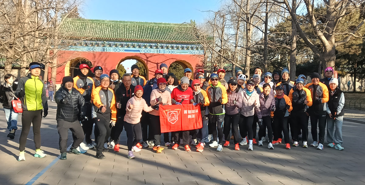 在热身的人群中,我遇到了首都媒体跑团,9:30,大家集体出发,沿着事先精心规划的路线欢快涌出。路线围绕西门、长廊、七星石、祈年殿等标志性建筑,将六百年的历史气息与蓬勃跃动的现代生命活力紧密串联。