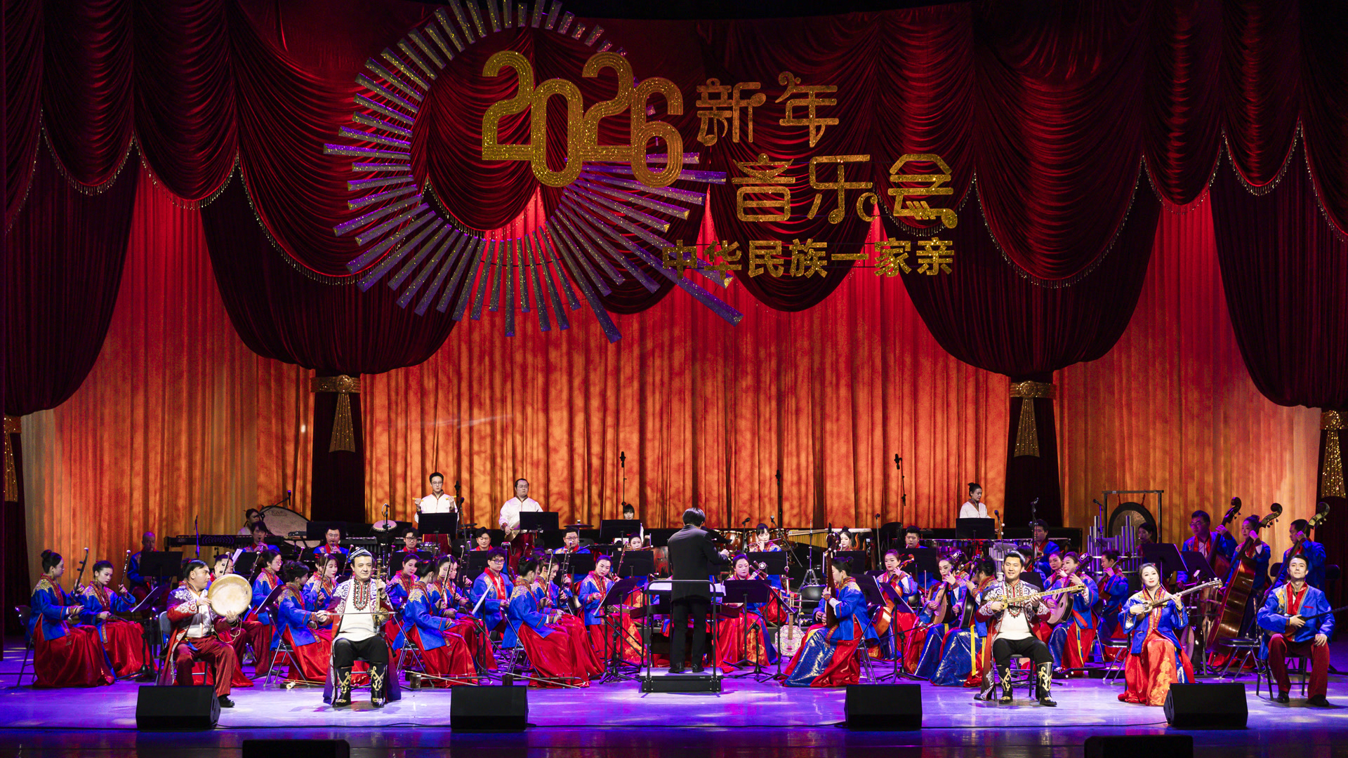 2025年12月31日晚,中央民族歌舞团“中华民族一家亲”2026年新年音乐会在民族剧院上演。中央民族歌舞团民乐团、北京音乐家协会合唱团等百余位艺术工作者携手登台,带领观众穿越山河湖海,聆听各民族的深情吟唱。