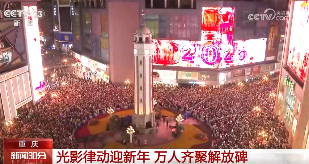 在重庆地标解放碑,人们也在热忱地等待着新一年的到来。当晚解放碑广场涌入了数万人,倒计时到来时,人们整齐的呼声让现场变得热气腾腾,大家共同期待迈向2026年的幸福和美满。