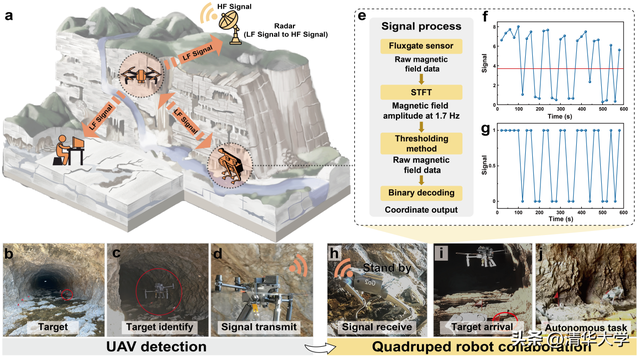 图2.无人机和四足机器人通过低频通信在洞穴中协同作业