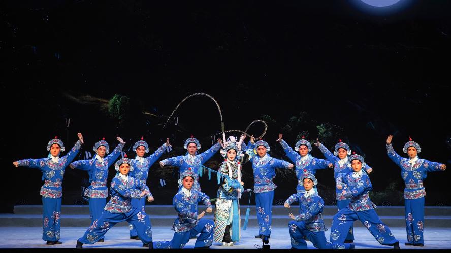 晚会最后一个节目是北京京剧院乐队集体呈现的京胡协奏曲《万马奔腾》,剧院老、中、青三代共23位琴师同台操琴,京剧弦乐的雅致气韵与京剧打击乐的激越节奏相得益彰,老、中、青三代琴音交织共鸣、气吞山河,用音乐绘就一幅薪火相传、奔腾不息的壮丽画卷。