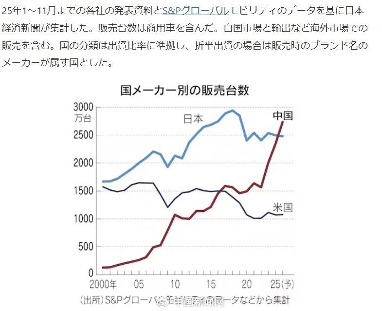 近日,《日本经济新闻》刊文称,2025年中国汽车制造商的全球销量有望超越日本,成为世界第一。
