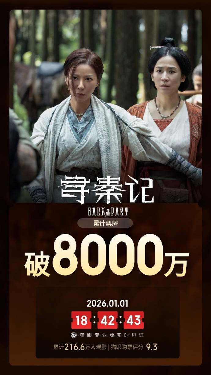 据猫眼专业版数据,电影《寻秦记》上映2天 ,总票房破8000万。