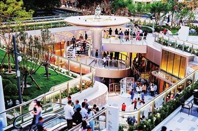 如今,走进大融城,李敏最直观的感受是“开阔”与“融合”。超过2万平方米的屋顶花园和五大庭院式下沉广场,打破了传统商场“封闭盒子”的束缚。阳光通过玻璃穹顶倾泻而下,原生树木被精心保留,与新栽种的绿植共同构成了一条条绿色的视觉走廊,从室外自然延伸到室内街区。