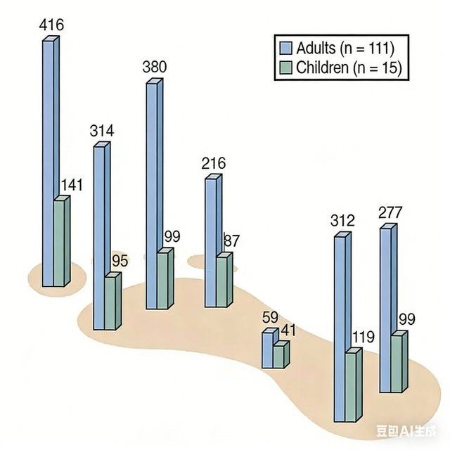 图为成人与儿童足底各点位压力:蓝色为成人,绿色为儿童