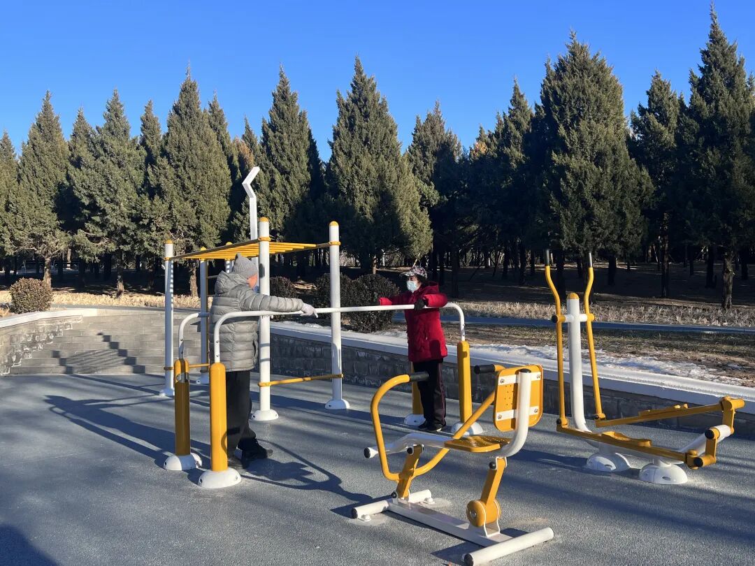 沿着红色的健身步道往里走,处处是鲜活的生活场景:健身区内,各类健身器材崭新齐全,长者们跃跃欲试,伸展筋骨,满脸惬意:“器材种类多,适合我们老年人。”“器材旁边还安了一排带顶棚的座椅,我们健身累了也能有地儿休息。”年近七十的张大爷边活动边和记者交流。