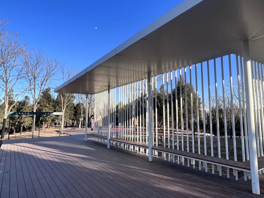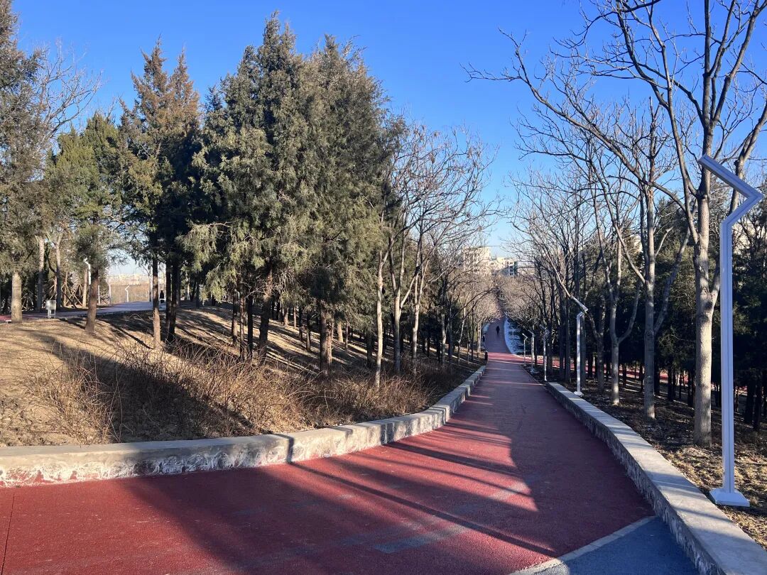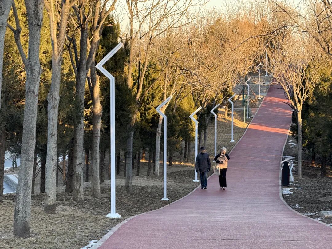 踏着平坦的台阶拾级而上,去往山上的每一步都藏着惊喜。登上公园制高点的观景平台,视野豁然开朗。向西眺望,西小龙山苍翠依旧,与之遥相呼应;俯瞰山下,永定河引水渠如一条玉带蜿蜒,远处城市轮廓线与近处公园景致层次分明。“这视野比以前爬荒山可好多了!”居民李女士望着远山笑着说。