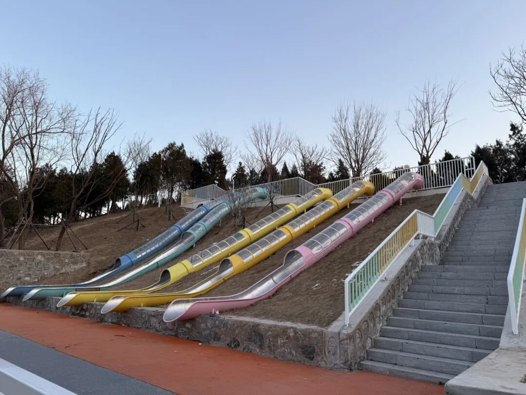 “为了适配山地地形,公园的设施都是‘依山造景、因势设场’。”项目相关负责人介绍,公园彩色步道顺着山势蜿蜒,既避免了大规模土方作业,又让居民在行走中感受自然起伏;后山处利用山地坡度设置了五彩滑梯,减少了人工垫高的成本,也让游玩更具“野趣”;台阶、步道两侧用挡墙护坡加固,既保障安全,又不破坏山体生态。“我们还建了完善的排水系统,解决了以前雨天积水、水土流失的问题,让公园既好看又耐用。”项目负责人说。