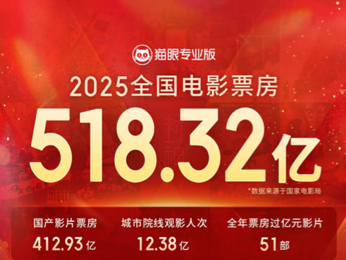 ▶ 2025年中国电影总票房518亿,电影市场显著回暖