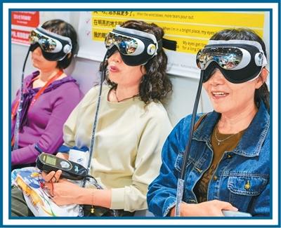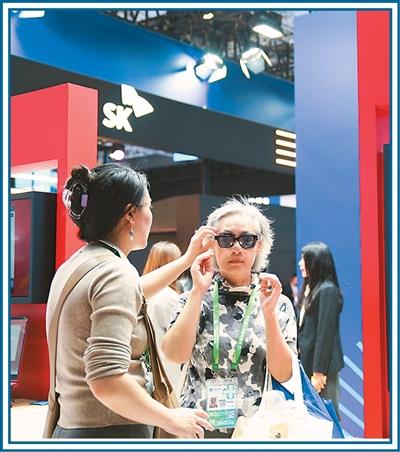 在第五届中国国际消费品博览会全球特色消费展区,消费者在体验干眼症治疗医疗设备,感受沉浸式按摩。张 茂摄(人民视觉)