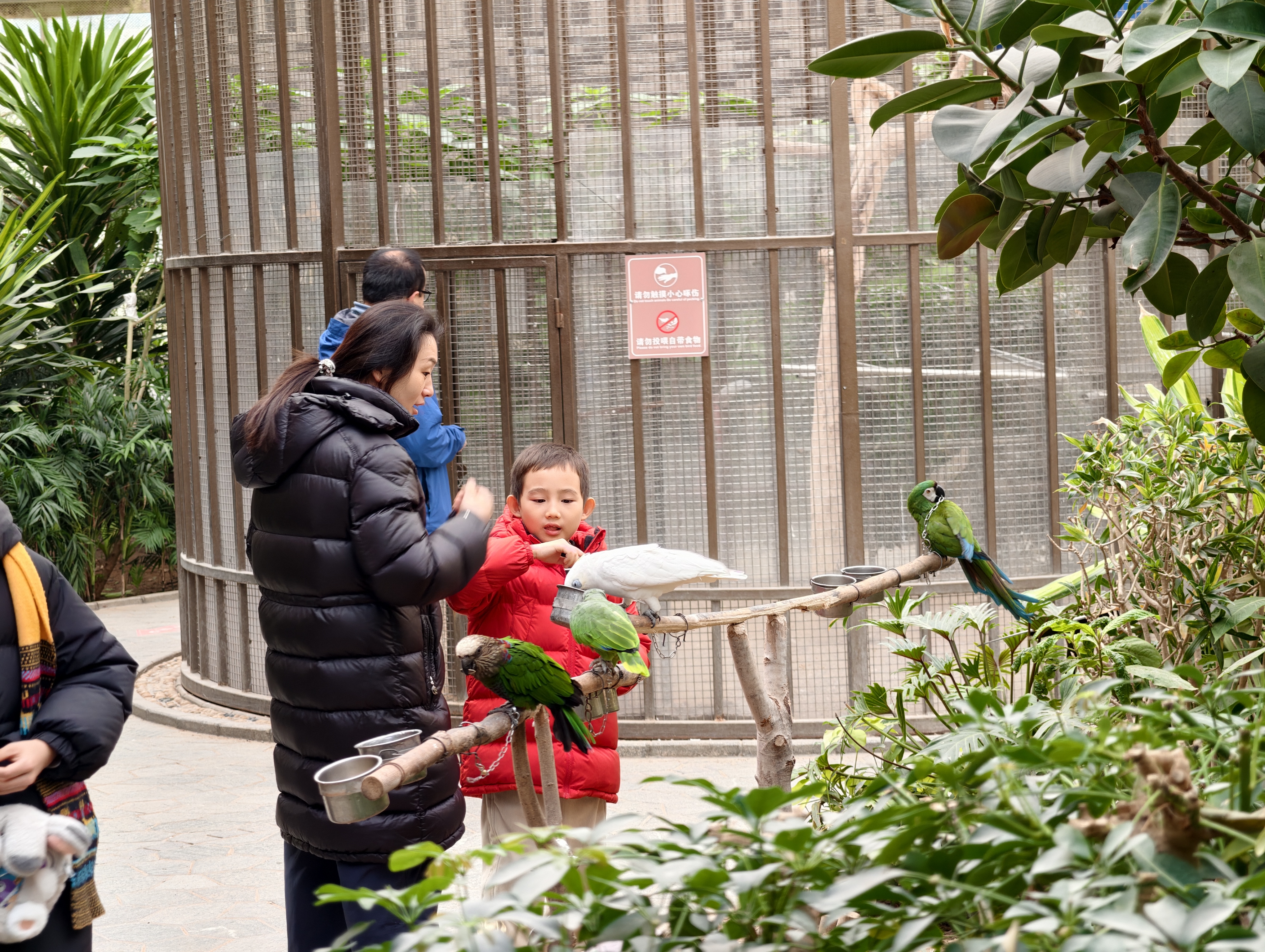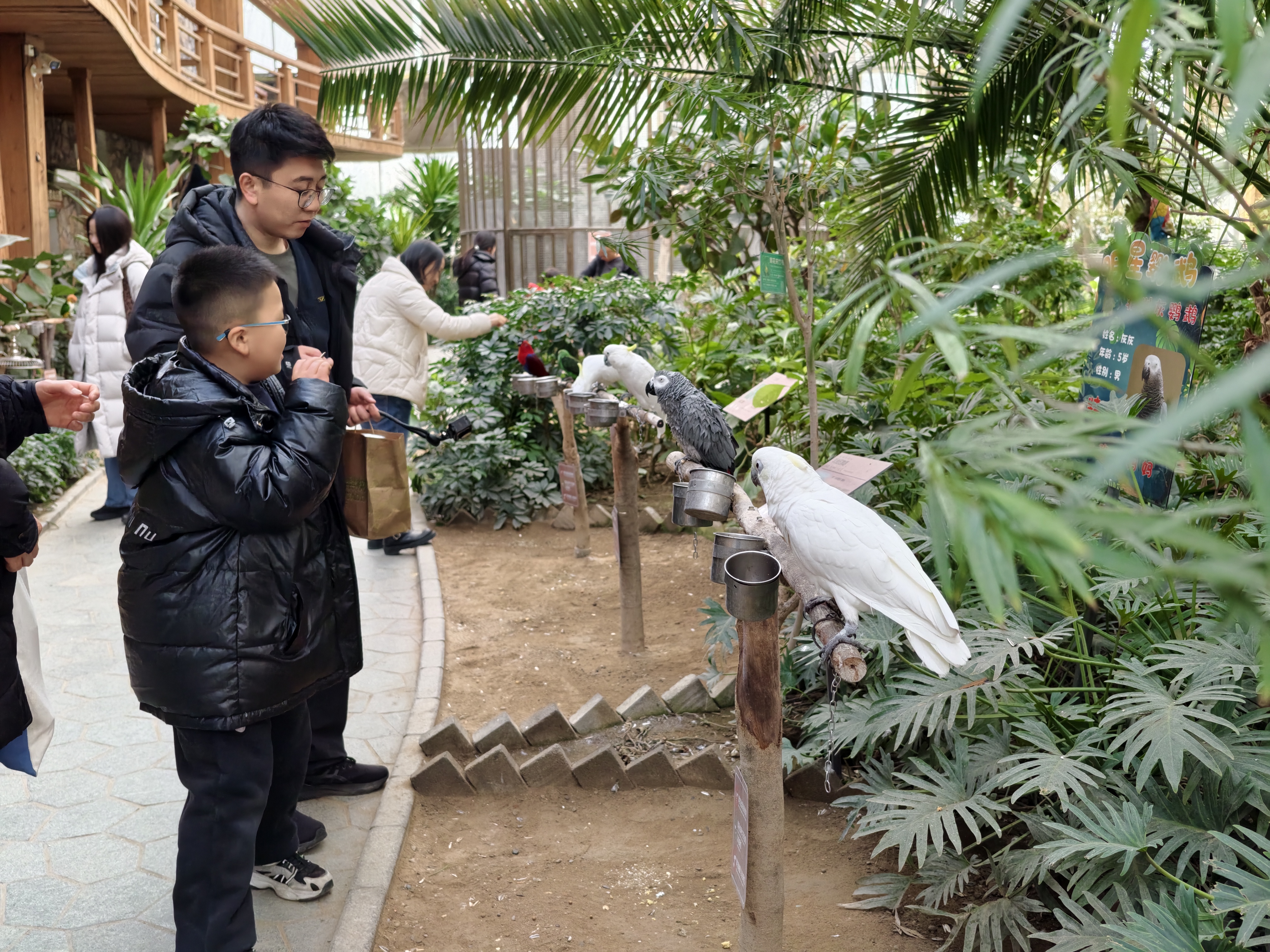 “一进门就被震撼了,从来没同时见过这么多颜色鲜艳的鹦鹉!”家住西城区的摄影爱好者陈先生一边调整镜头一边感叹,“快门都按不过来了,每一帧都是画。”“我们隔一段时间就会来一次。”正在引导孩子给鹦鹉喂食坚果的市民张先生告诉记者,“鹦鹉聪明、亲人,孩子能从中学会尊重生命。而且‘鹦鹉’谐音‘英武’,又色彩喜庆,新年图个红火好兆头。”园区负责人介绍,为迎接元旦,园方不仅增加了互动展示。